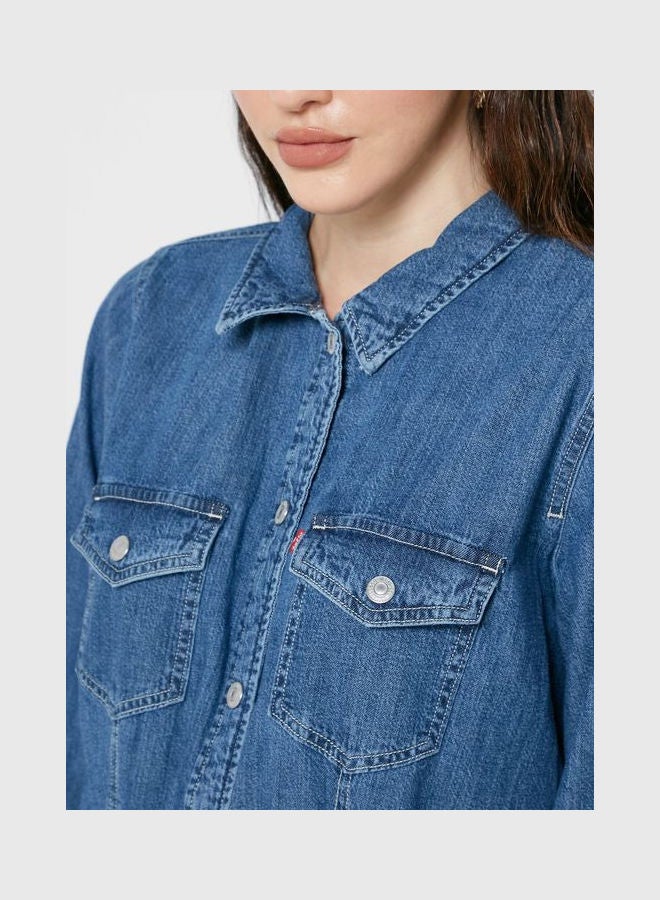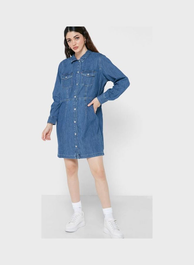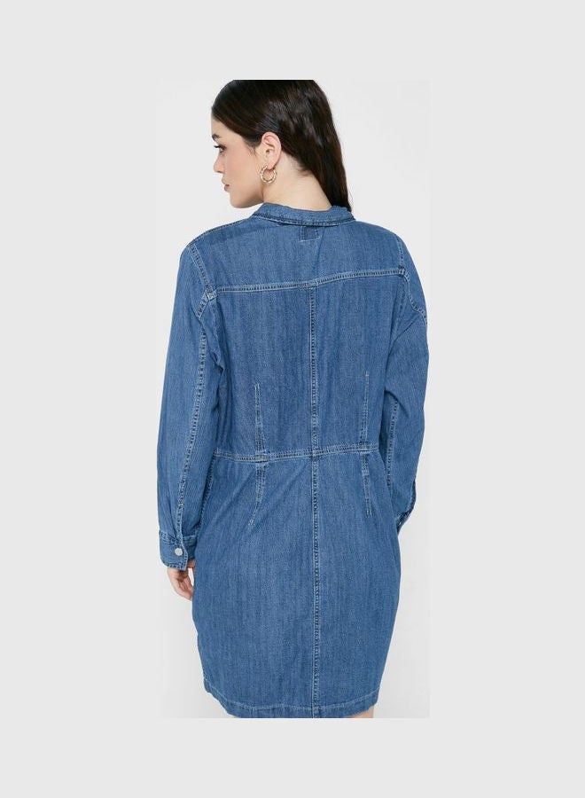 Blue Denim Dress with Pocket Detail.