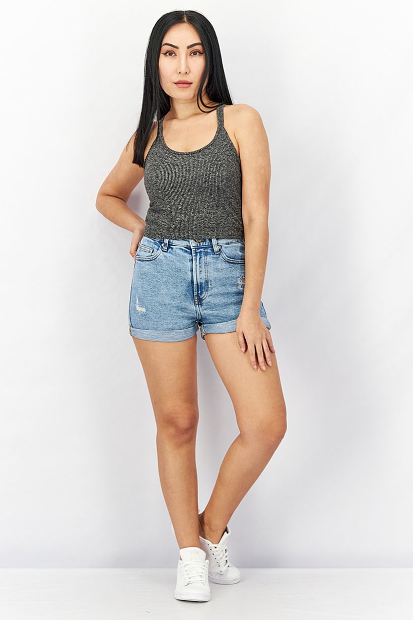 Blue Denim Shorts with Five Pockets for Women in Regular Fit.
