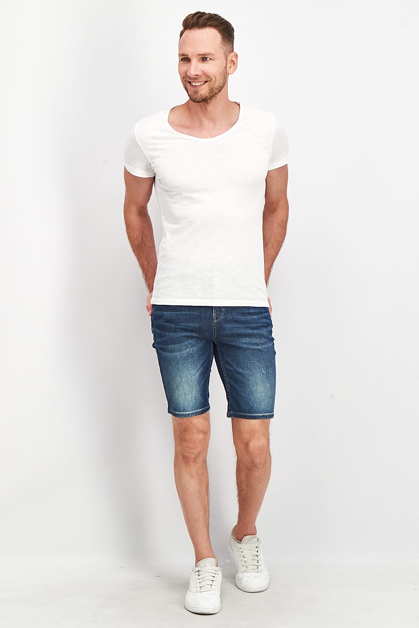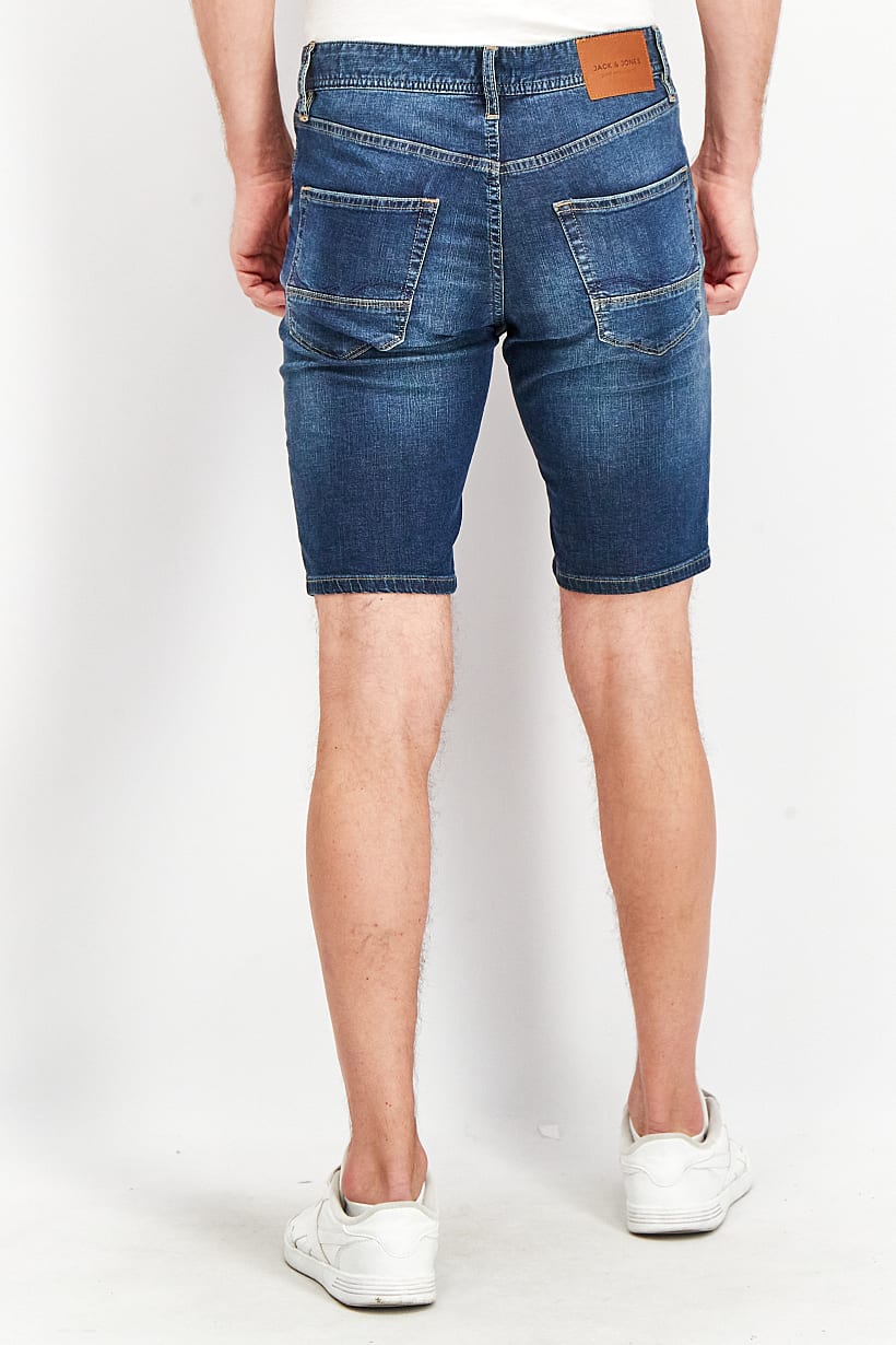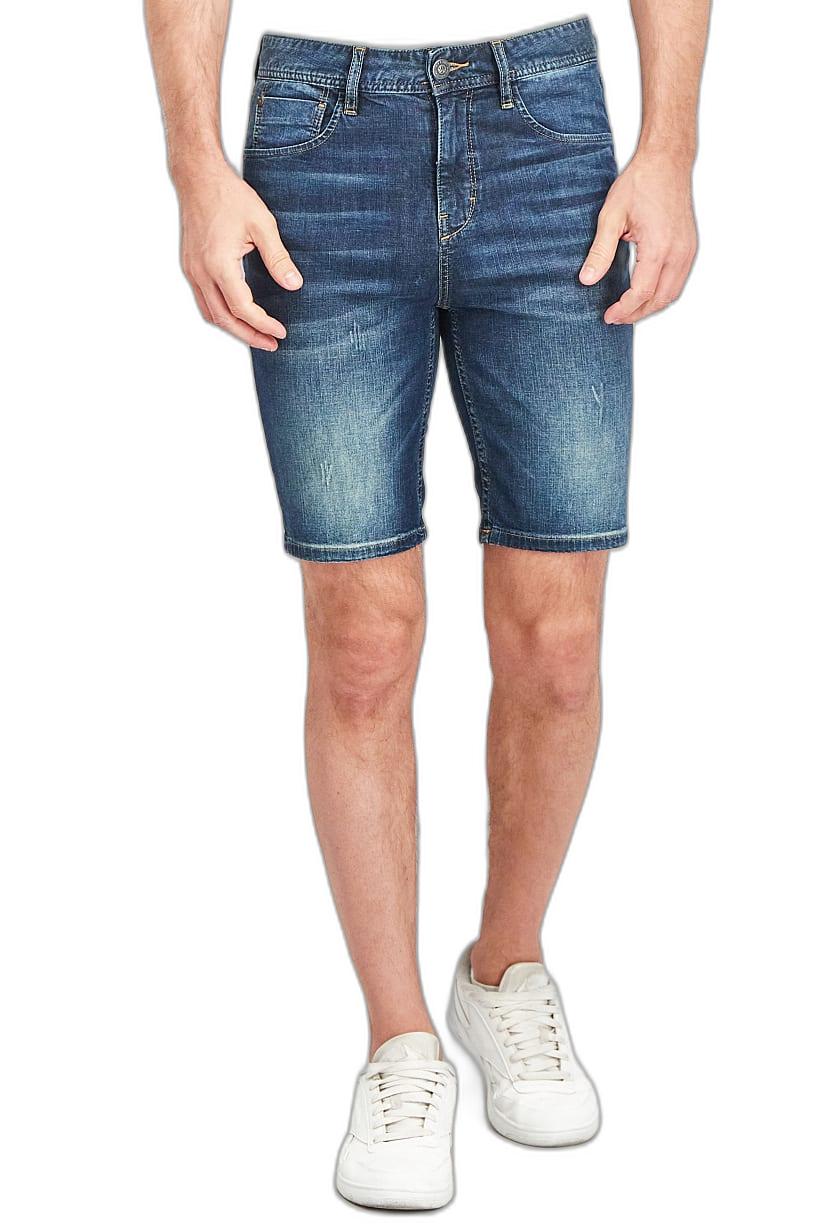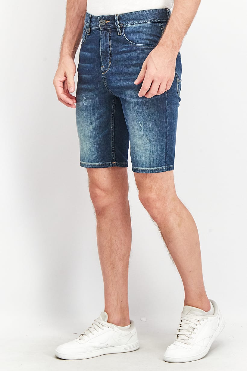 Bottom Hem : Straight, Care : Machine washable, Fit : Tapered, No of pockets : 5, Size shown : International, Stretch Type : No stretch, Bottom Closure : Zipper fly, Fabrics : 83% Cotton, 15% Polyamide, 2% Elastane, Pattern & Print : Washed, Color Family : Blue, Type of Short : Denim short, Occasion : Casual,