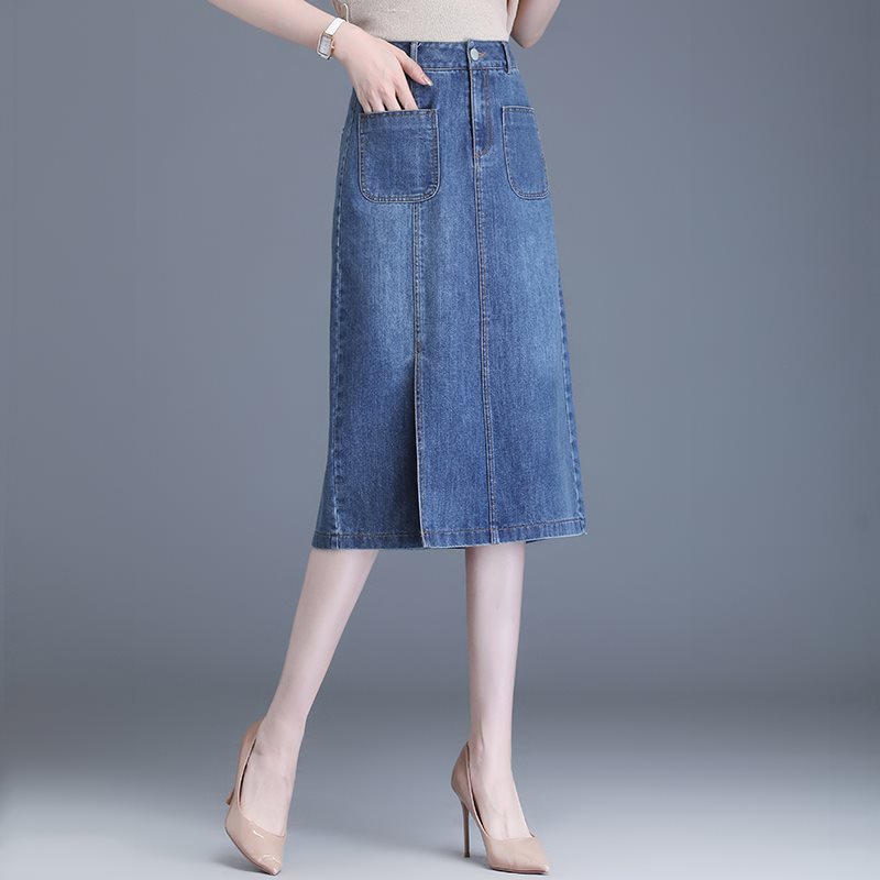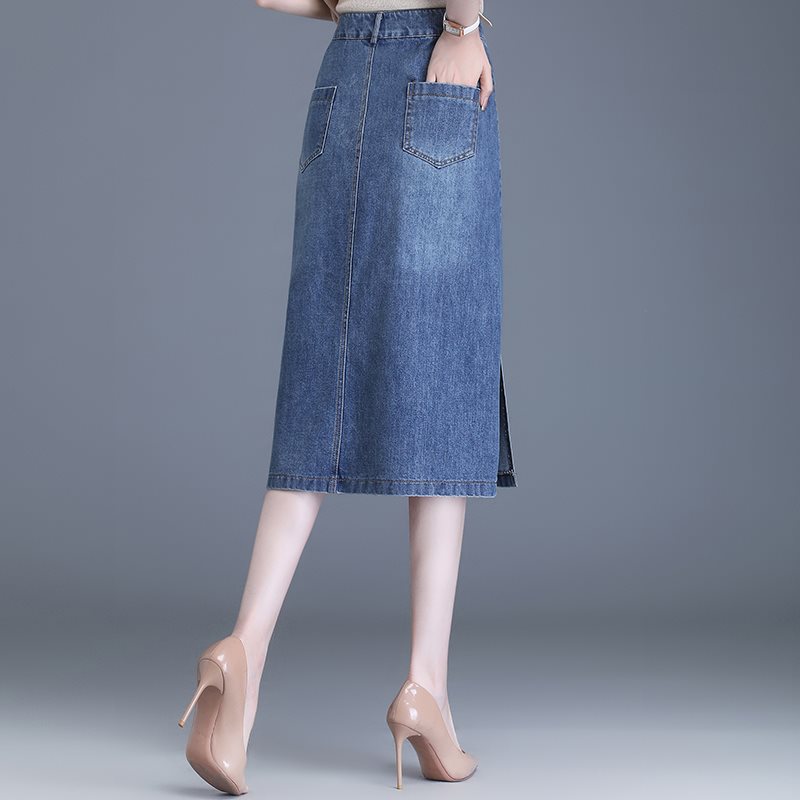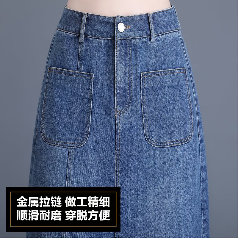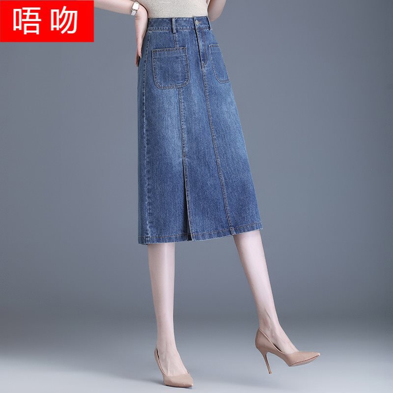 | nameOriginal | Blue Denim Skirt Women's Summer 2024 New Spring and Autumn High Waist Mid-length Split Slimming Straight Hip Skirt |