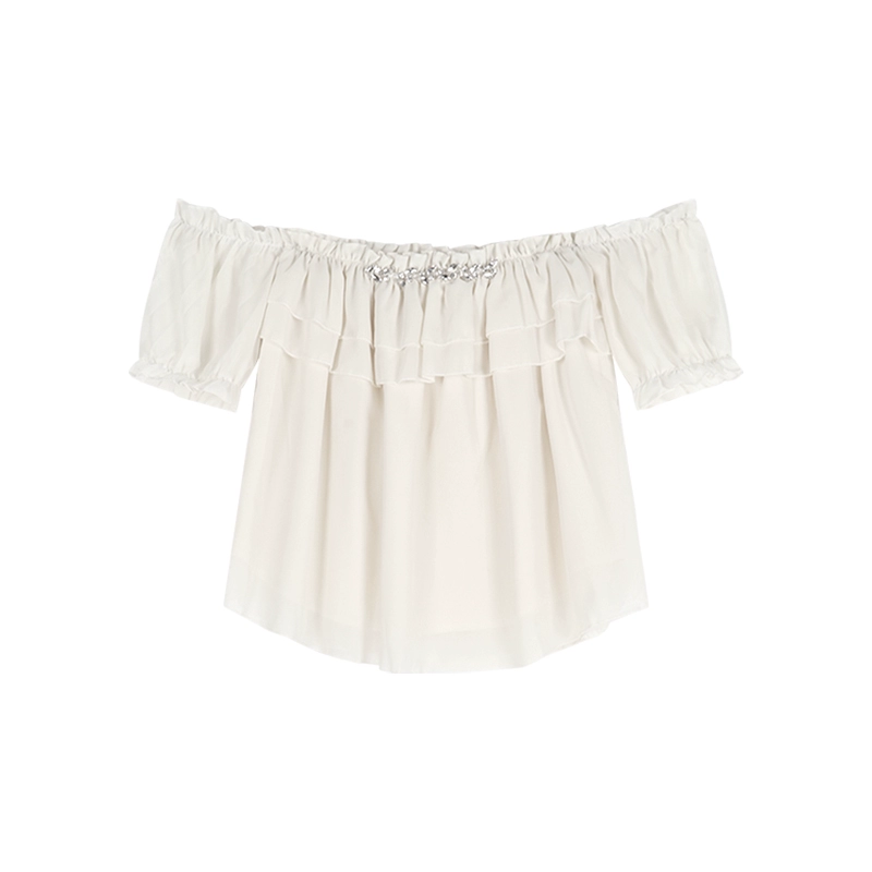 | nameOriginal | Blue diamond-embellished one-shoulder summer slim-fitting short-sleeved shirt |