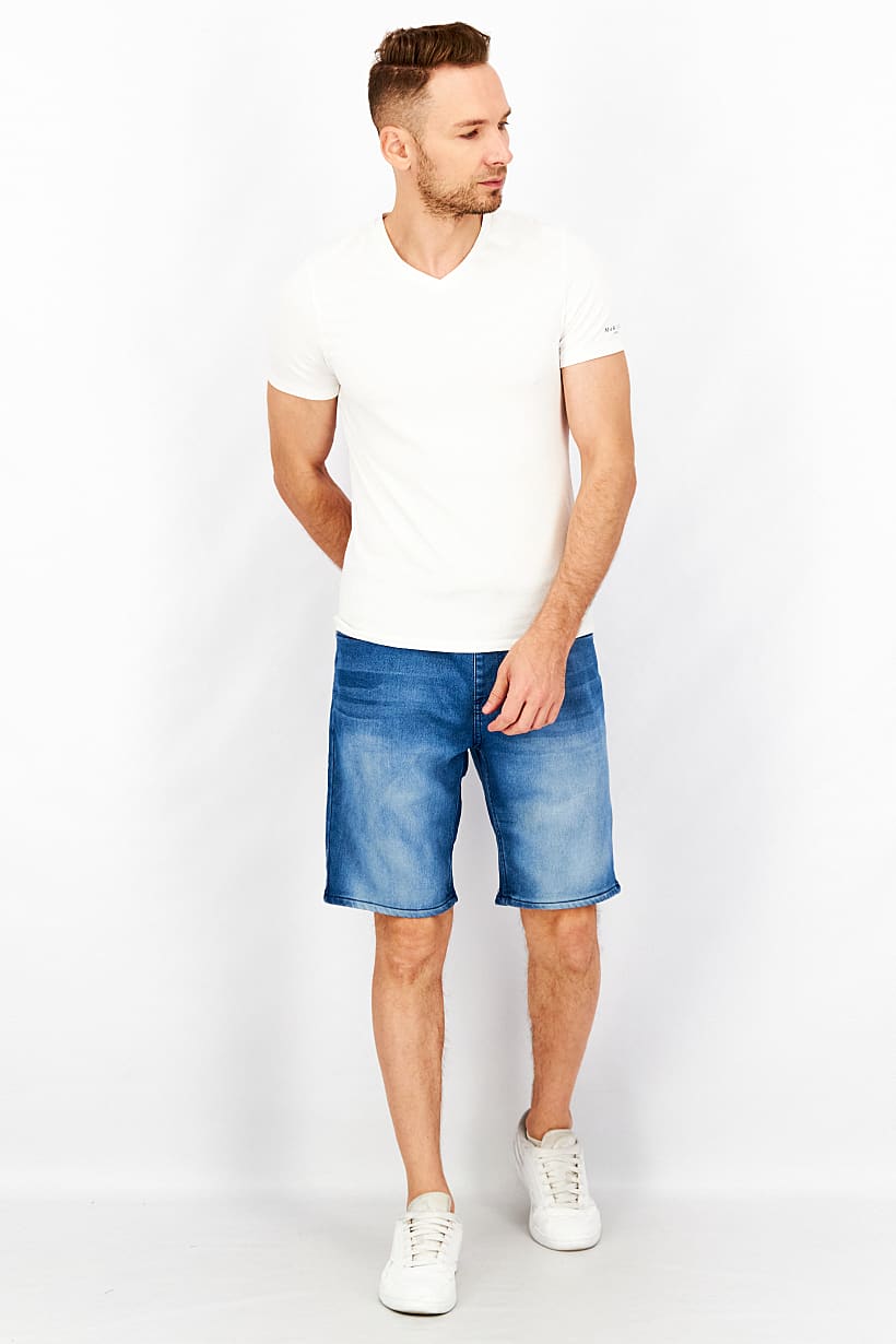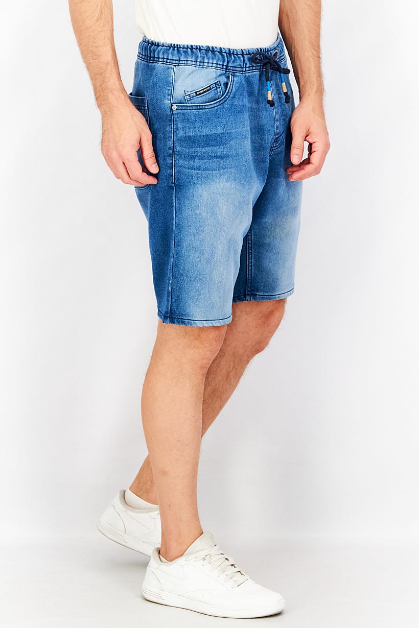 Bottom Hem : Straight, Care : Machine washable, Fit : Regular fit, No of pockets : 5, Size shown : Inches, Stretch Type : Stretchable, Type of Short : Denim short, Bottom Closure : Drawstring, Disclaimer : Product color may slightly vary due to photographic lighting sources or your monitor settings., Fabrics : 81% Cotton, 18% Polyester, 1% Elastane, Occasion : Casual, Pattern & Print : Washed, Color Family : Blue,