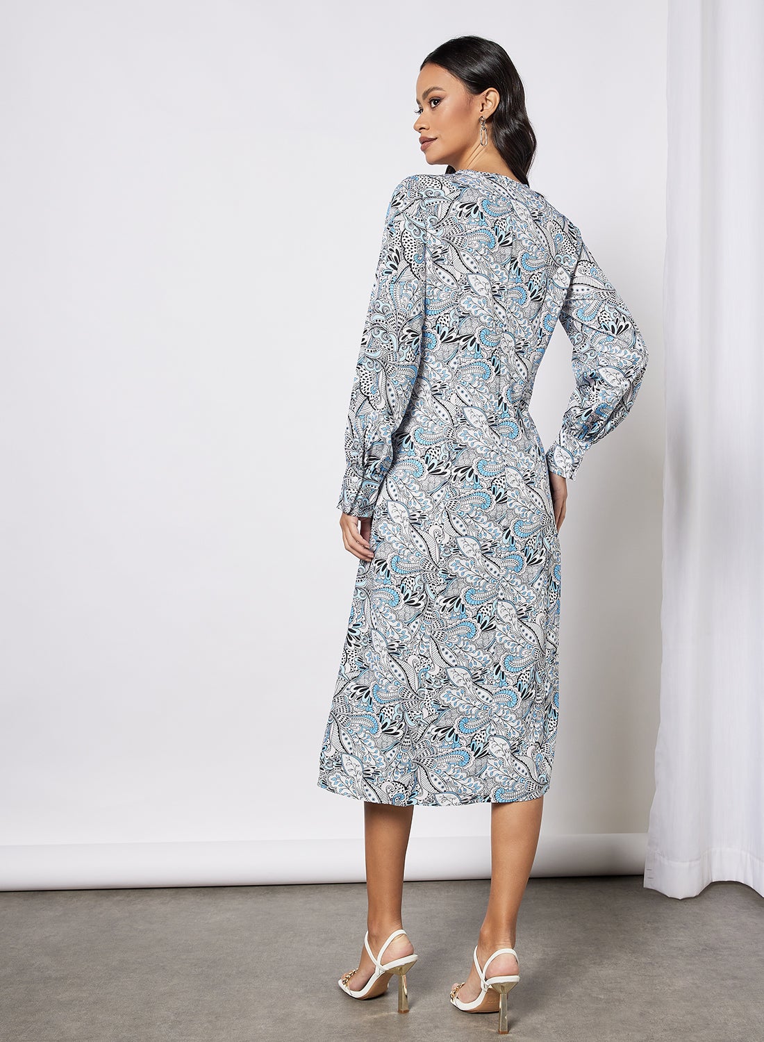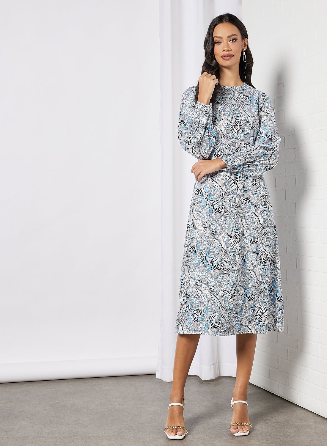| nameOriginal | Print puff sleeve side pocket dress Blue |