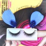 | nameOriginal | Blue elf feather with diamond exaggerated false eyelashes cos stage performance competition model creative art photo |