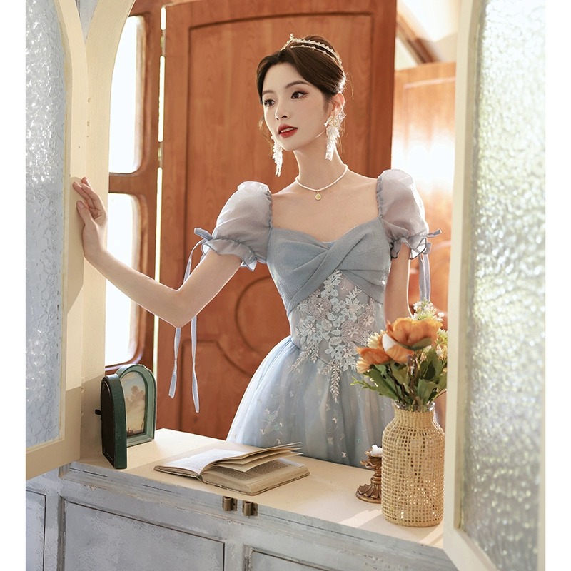 | nameOriginal | Blue evening dress banquet French style light luxury niche temperament high-end high-end sense Princess vocal art exam performance female |
