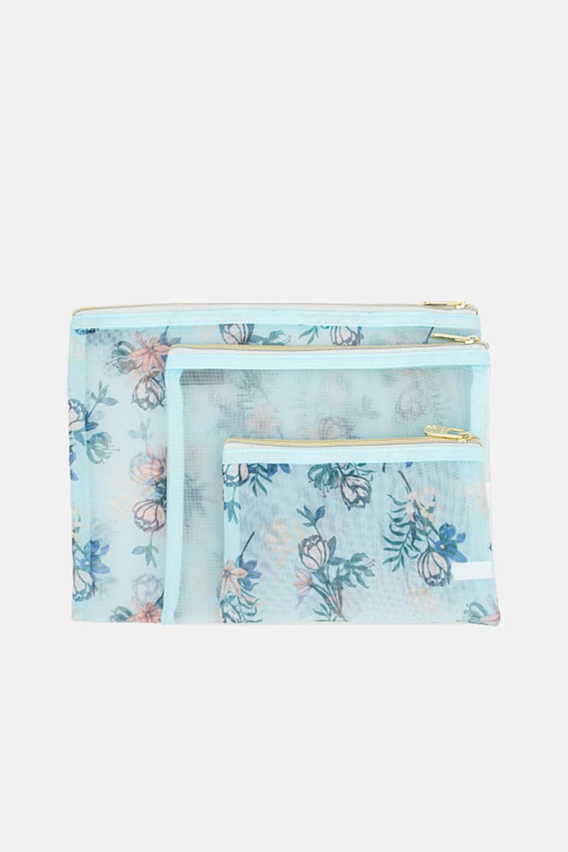 Personal Care, Makeup Accessories, 3 pcs floral print travel pouch set blue