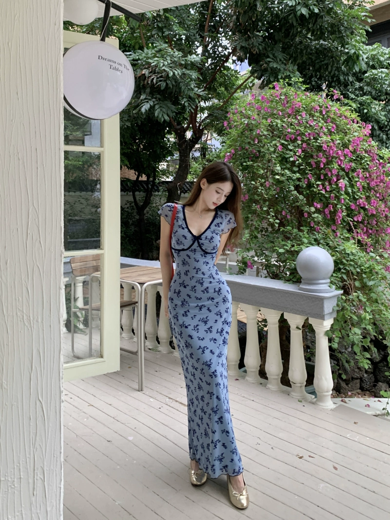 | nameOriginal | Blue floral v-neck summer figure-flattering dress |