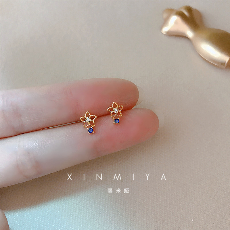 | nameOriginal | Blue flower 925 sterling silver earrings high-end light luxury mini zircon earrings compact women 2024 new trend |