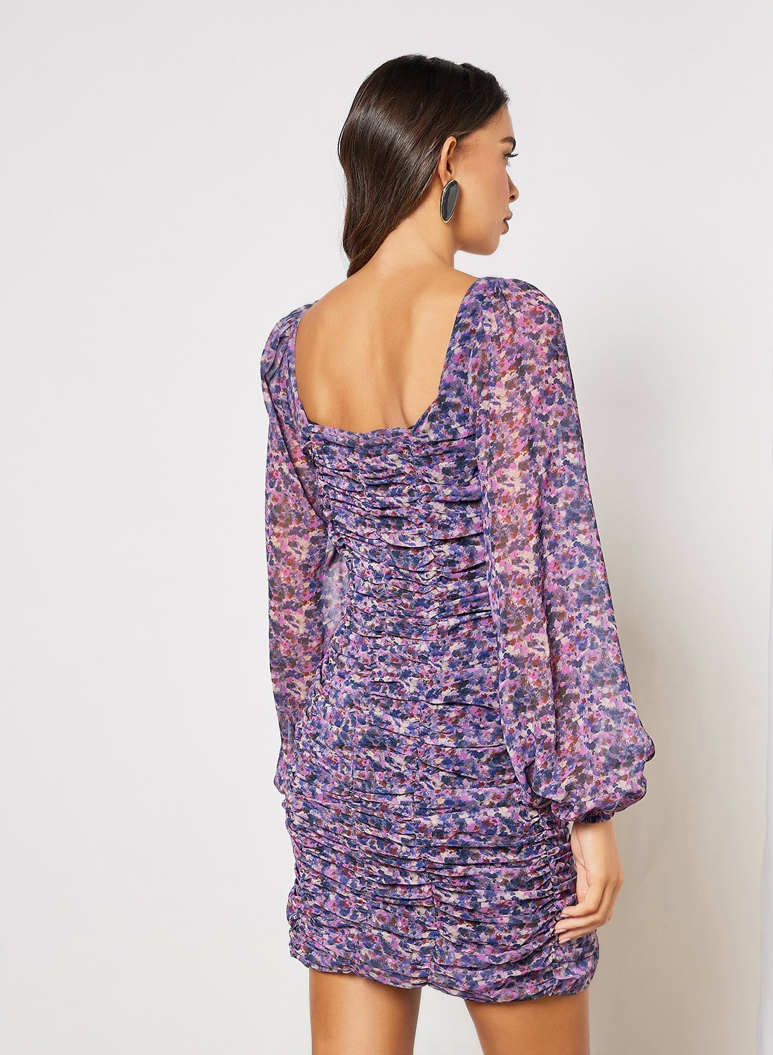 Achieve a chic party look by pairing these heels with this stunning product. It features a square neckline and long sleeves, adorned with an all-over floral print. The ruched detailing adds a touch of elegance, while the elasticated sleeve cuffs provide a comfortable fit. Made from 100% polyester, this mini-length dress is easy to care for – simply follow the instructions on the care label.
