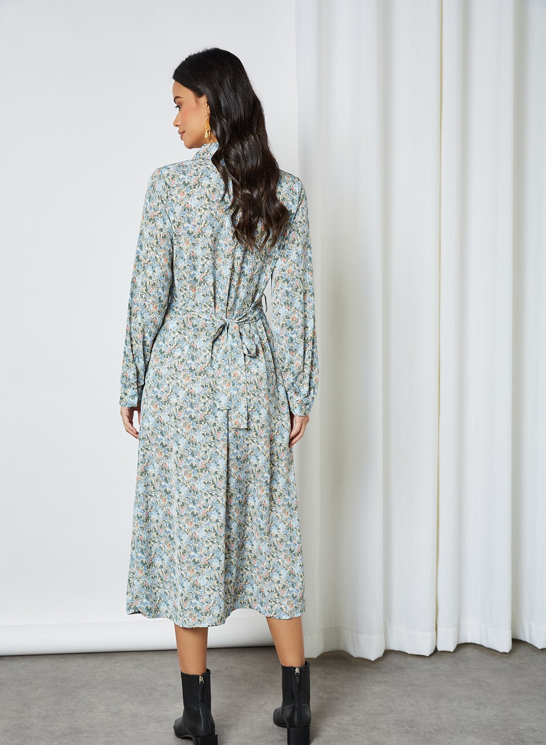 Blue Flower Pumice Stoneaop Floral Shirt Dress.