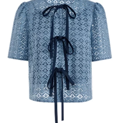 | nameOriginal | Blue French bow two-piece suit with elegant lace |