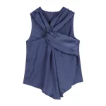 Blue halterneck niche irregular slim sleeveless satin