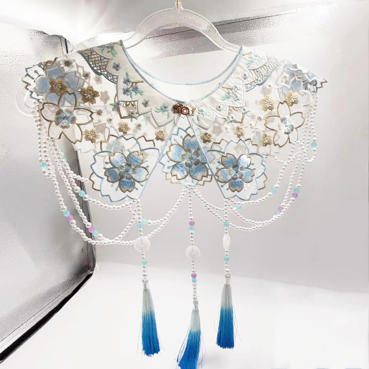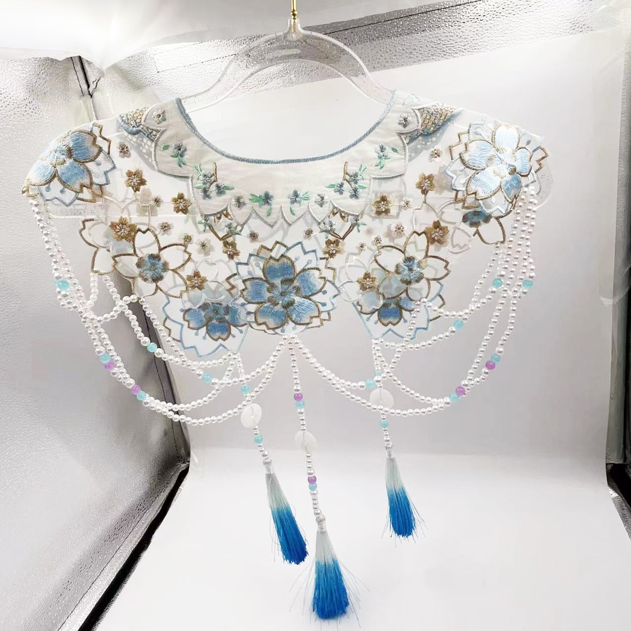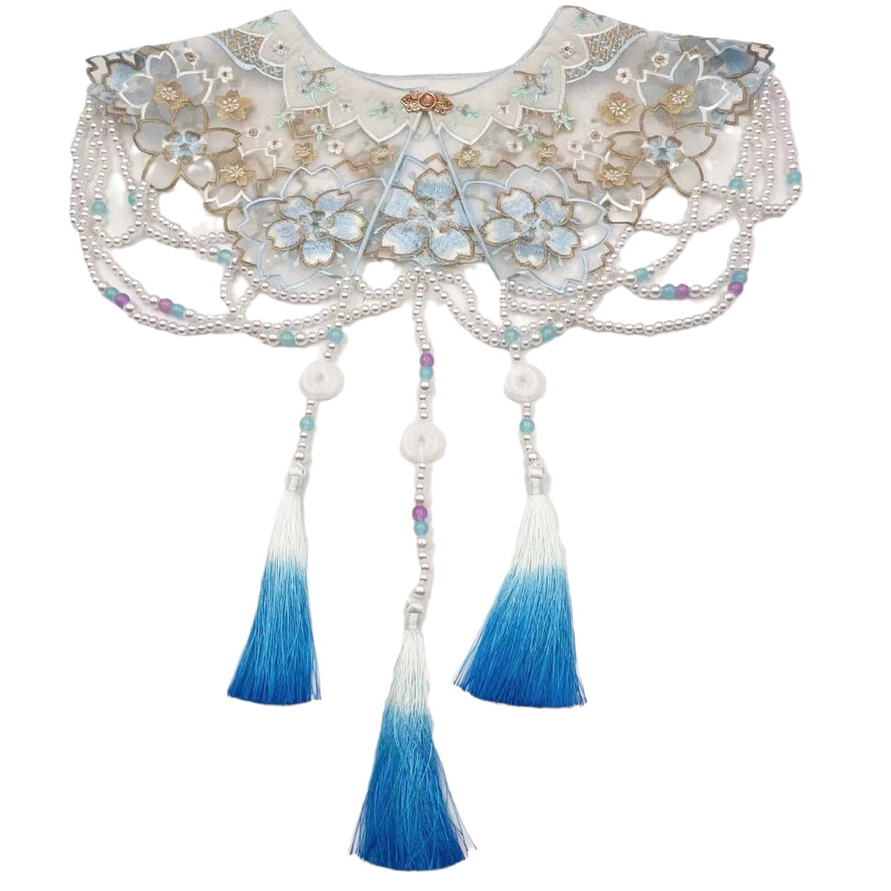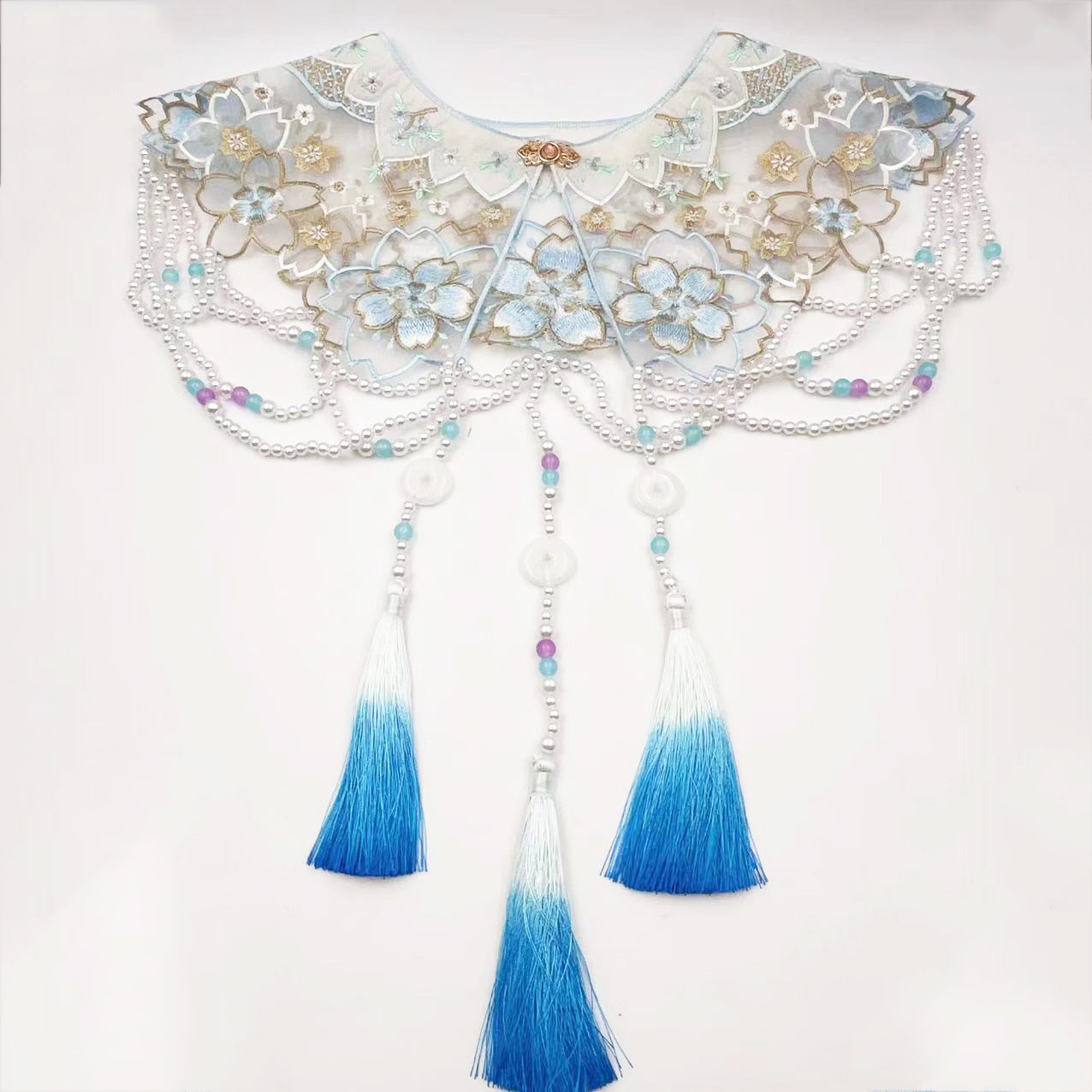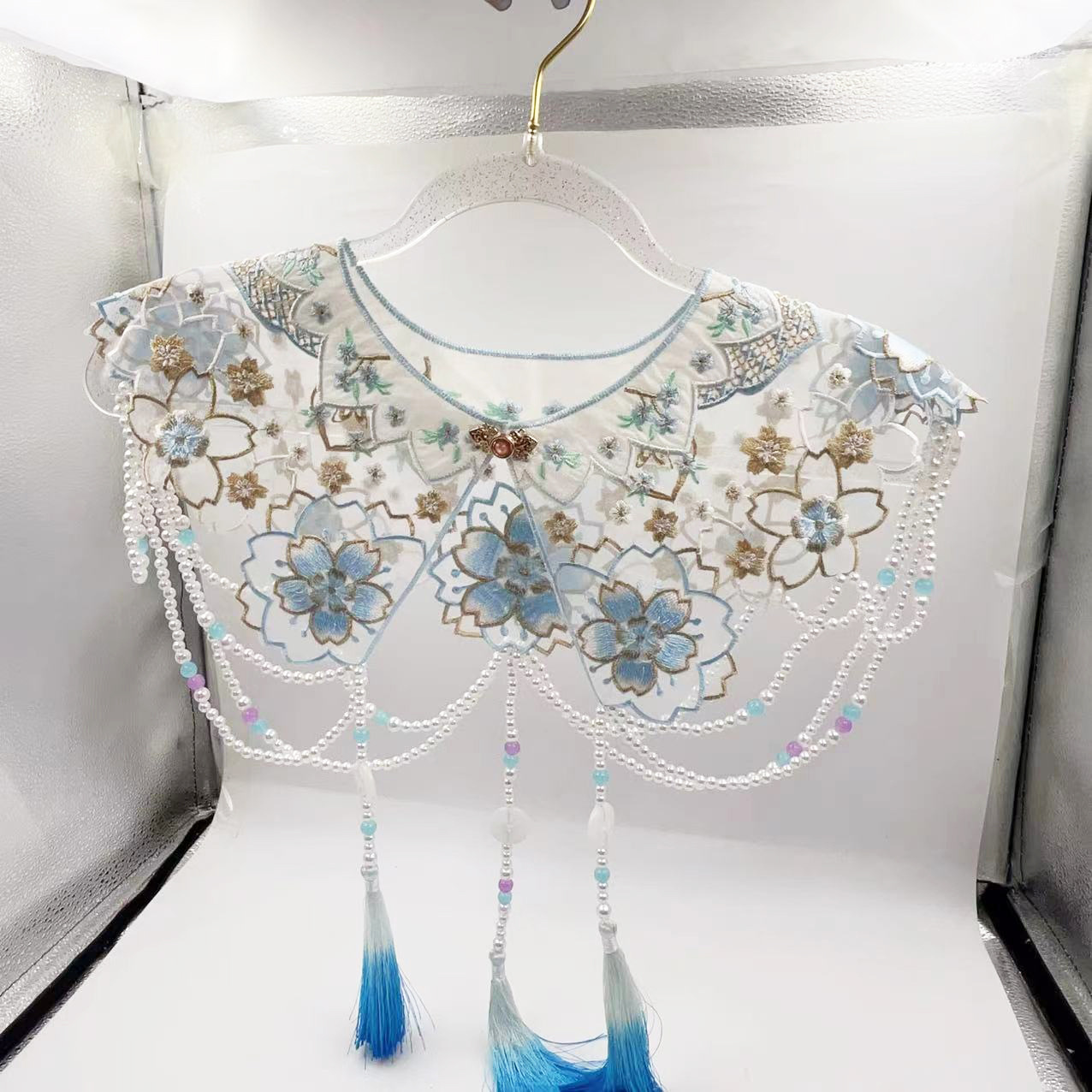 | nameOriginal | Blue Hanfu Cloud Shoulder New Chinese 2024 New Decorative Fake Collar Women's Tassel Dress Small Shawl |