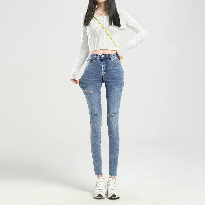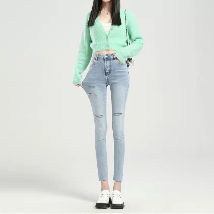 | nameOriginal | Blue high-waisted thin skinny cropped ripped jeans |