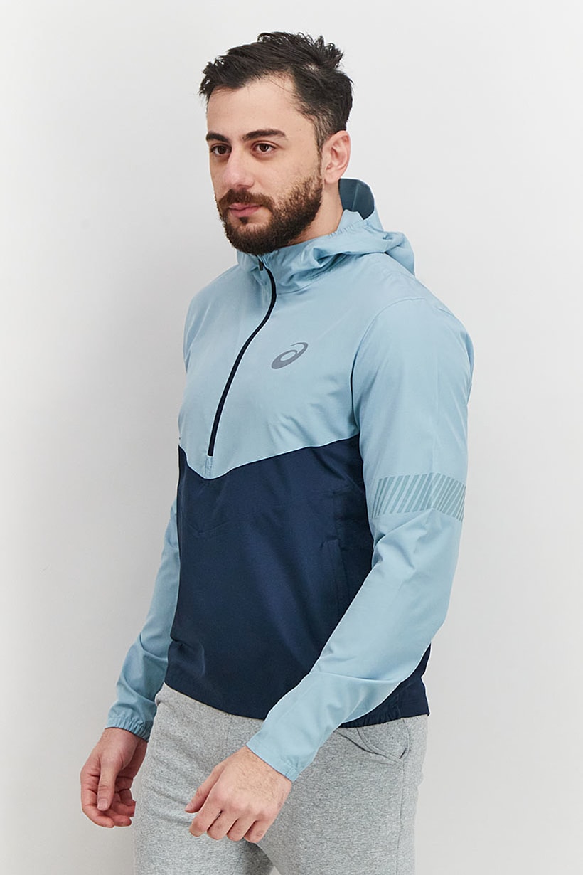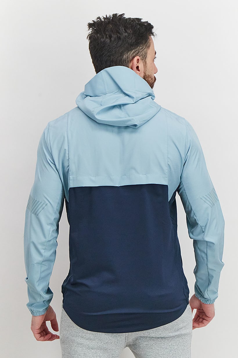 Men Clothing, Sportswear, men regular fit hooded visibility running jacket smoke blue and french blue
