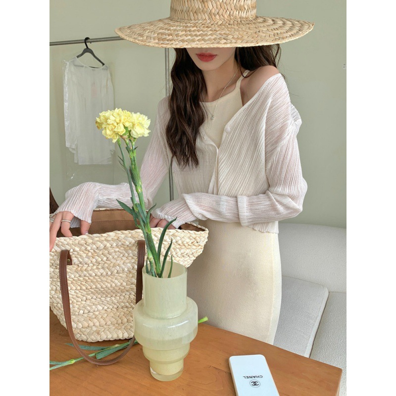Blue Ice Silk Knitted Short Sunscreen Cardigan Women’s Summer Thin Skirt Shawl Collar Air-conditioning Shirt Small Waistcoat