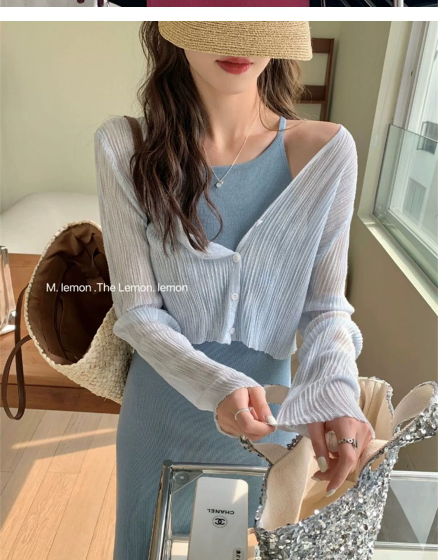 | nameOriginal | Blue ice silk women's summer suspender skirt gauze waistcoat cardigan |