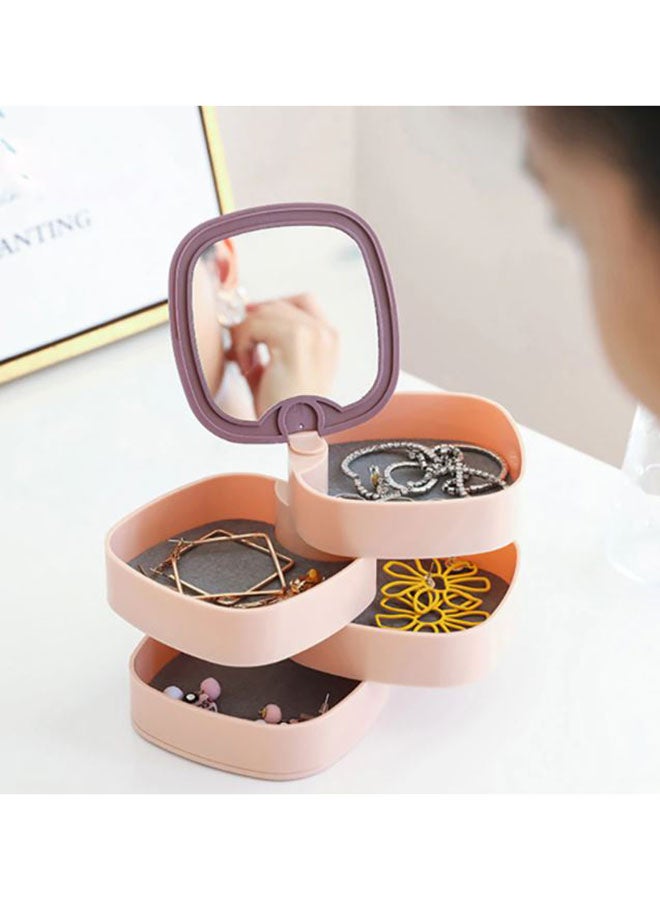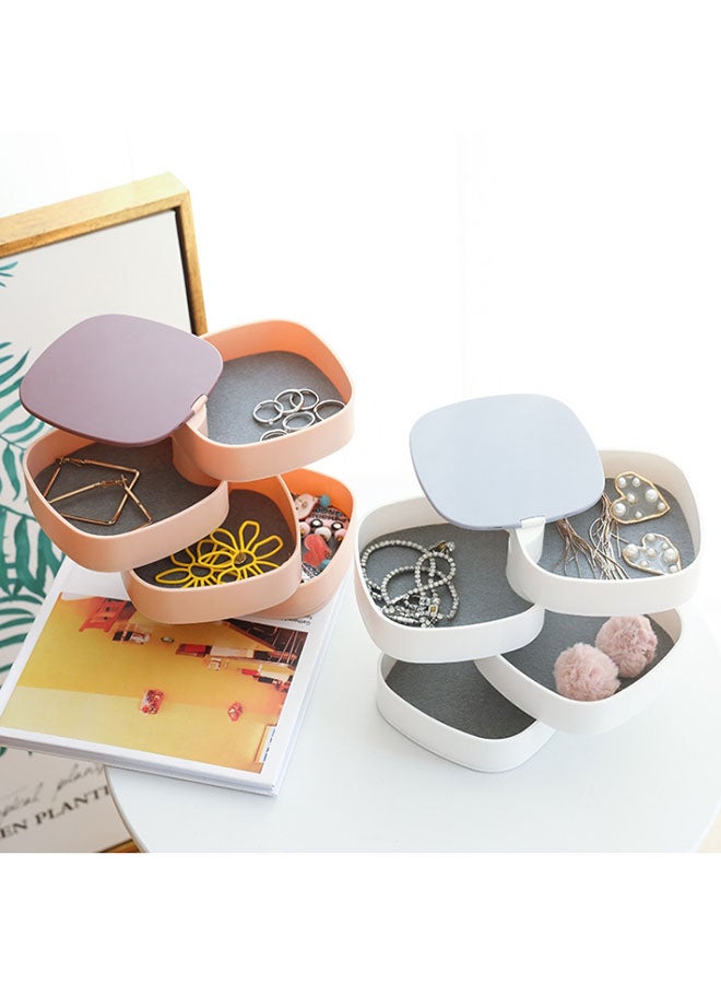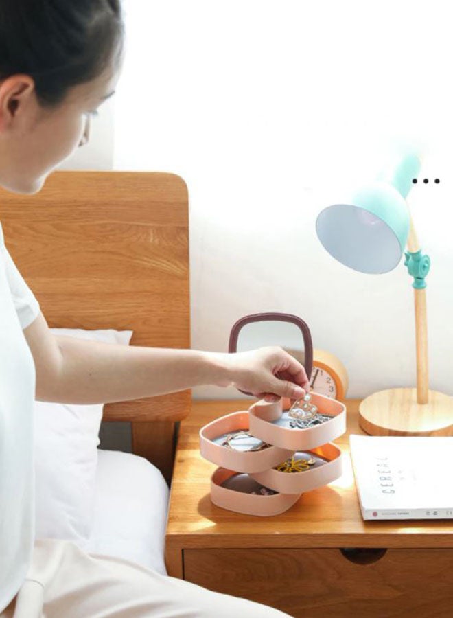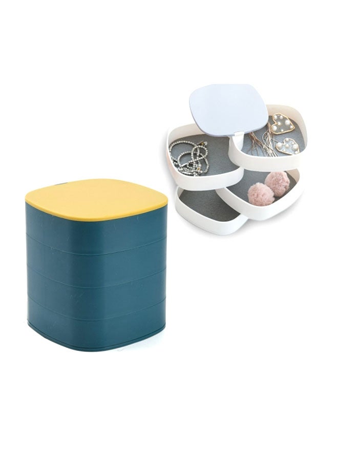 Four-Layer Rotating Jewelry Organiser Storage Box With Mirror Blue
