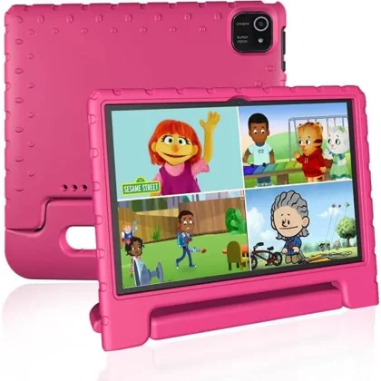 This kids tablet from JREN features advanced parental control technology, allowing parents to select appropriate content and limit screen time. The tablet includes educational games, videos, and learning content to aid in a child’s physical and mental growth. With 32GB of internal storage and up to 12 hours of battery life, kids can stream or view downloaded content on the go. The tablet also comes with a kid-proof case made of lightweight, durable, and impact-resistant soft silicone material to protect against scratches, dirt, and bumps. The case includes a 360-degree adjustable stand to support the tablet from all angles. The 10-inch LCD display features IPS HD technology with an aspect ratio of 16:10 and a touchscreen for an excellent full-angle viewing experience. Additionally, the tablet is designed with low blue light technology to minimize eye damage, and parents are advised to remind their kids to maintain a proper viewing distance for a comfortable and eye-friendly experience.