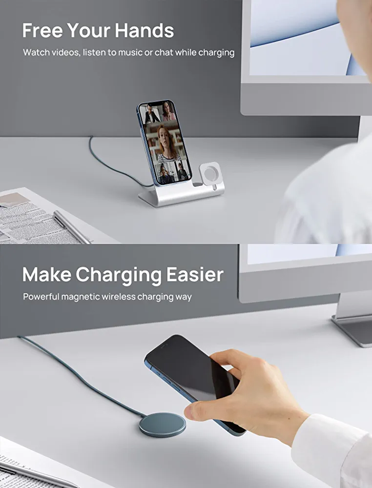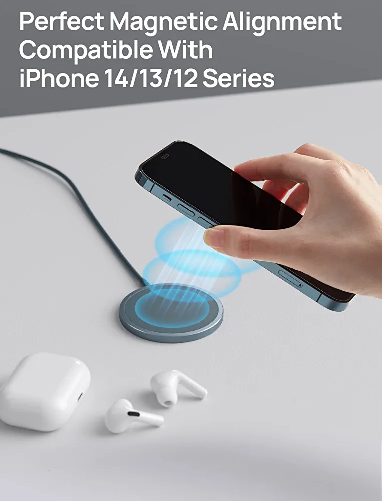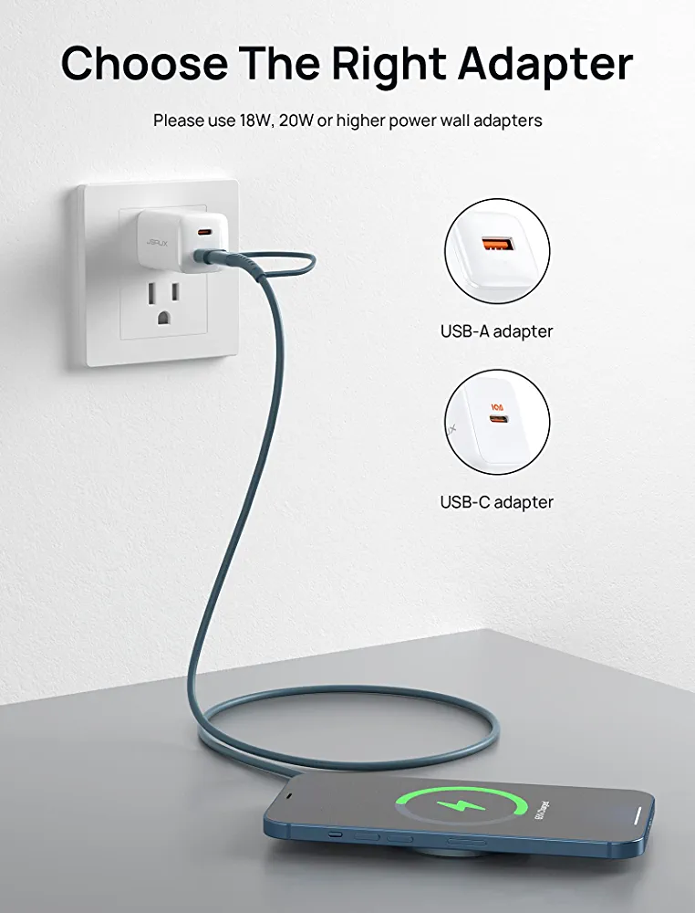 Blue JSAUX MagSafe Compatible Wireless Charging Pad for iPhone 12/13/14 Series.