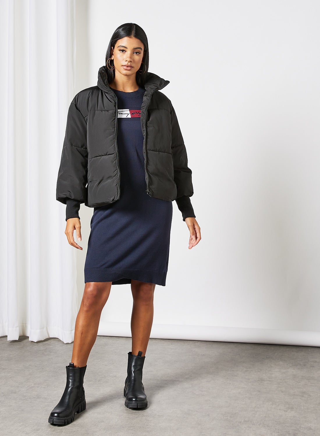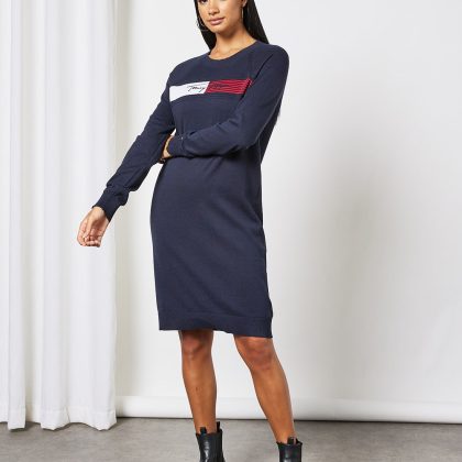 | nameOriginal | Signature Logo Embroidery Knit Dress Blue |