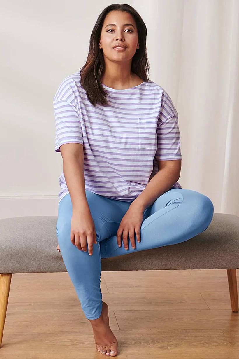 | sub_Categories | Women Clothing, Sleepwear / Homewear, women 2 piece stripe top and pull on bottom set homewear blue lilac |