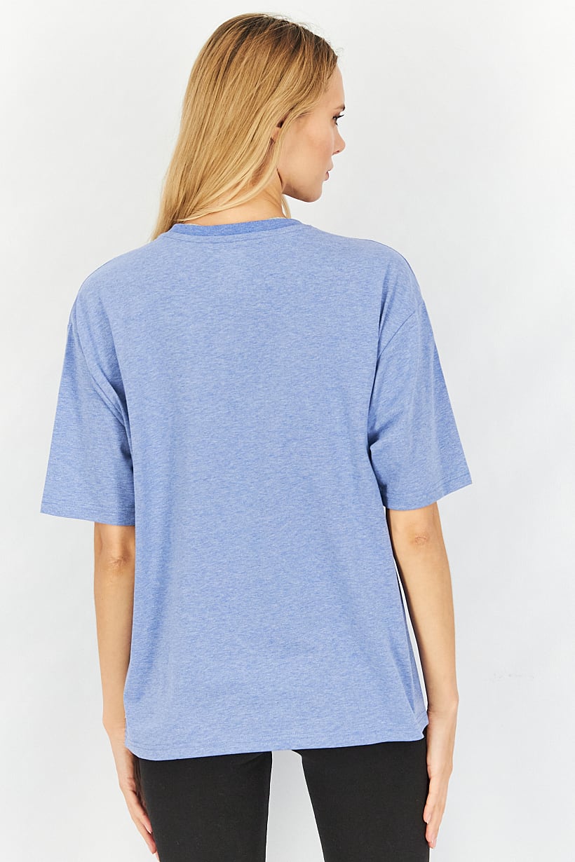 Blue Logo Print Women’s Oversized T-Shirt with Short Sleeves.