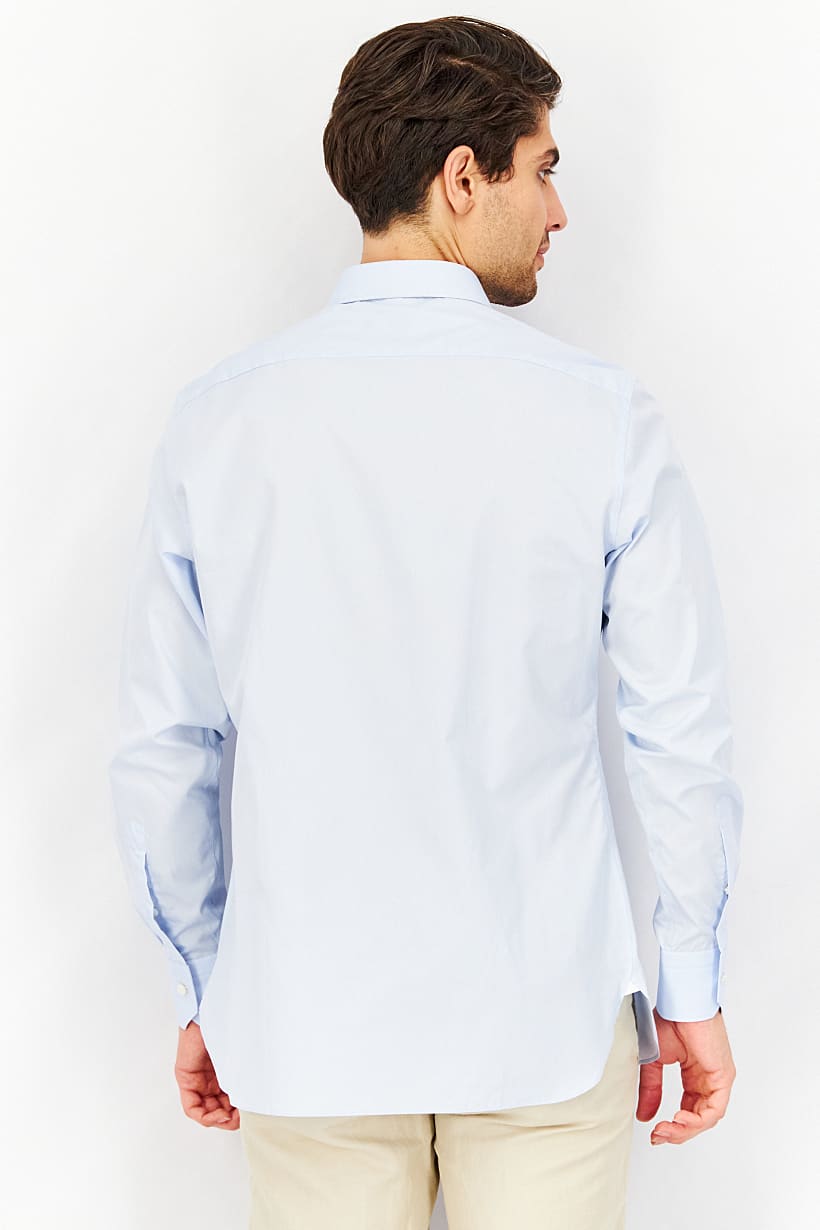 Blue Long-Sleeved Dress Shirt for Men with Regular Fit.