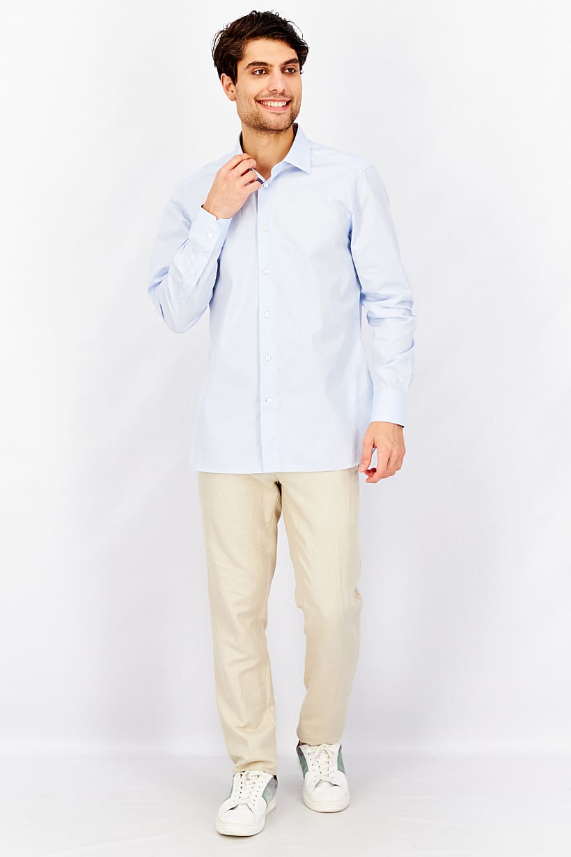Men Clothing, Dress Shirts, men regular fit plain long sleeves dress shirt blue