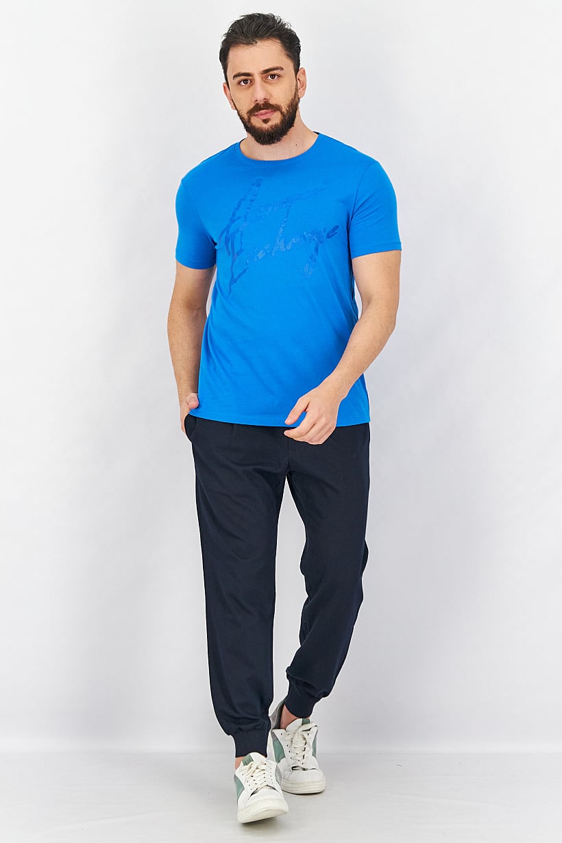 | nameOriginal | Men Crew Neck Short Sleeve Brand Logo T-Shirt, Blue |