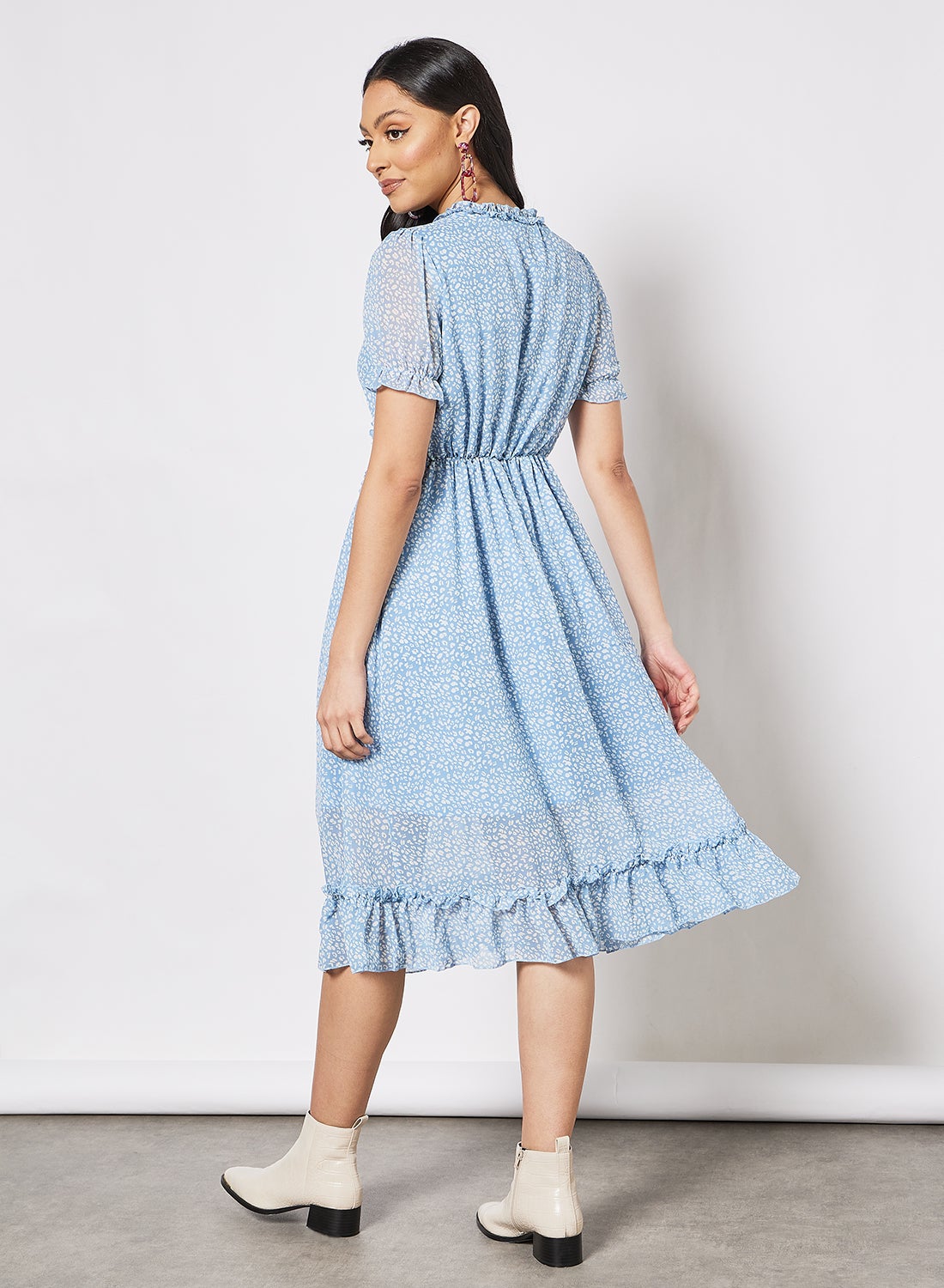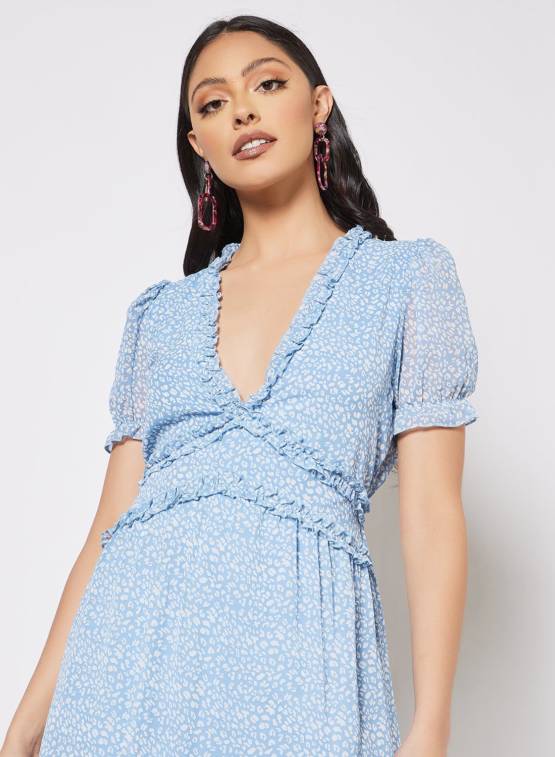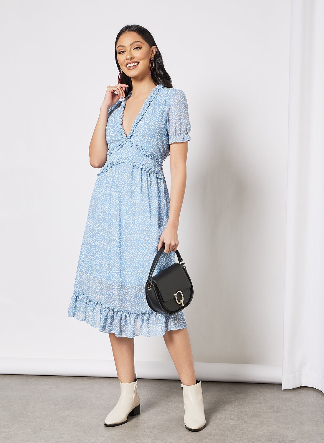 | nameOriginal | Plunge Printed Midi Dress Blue |