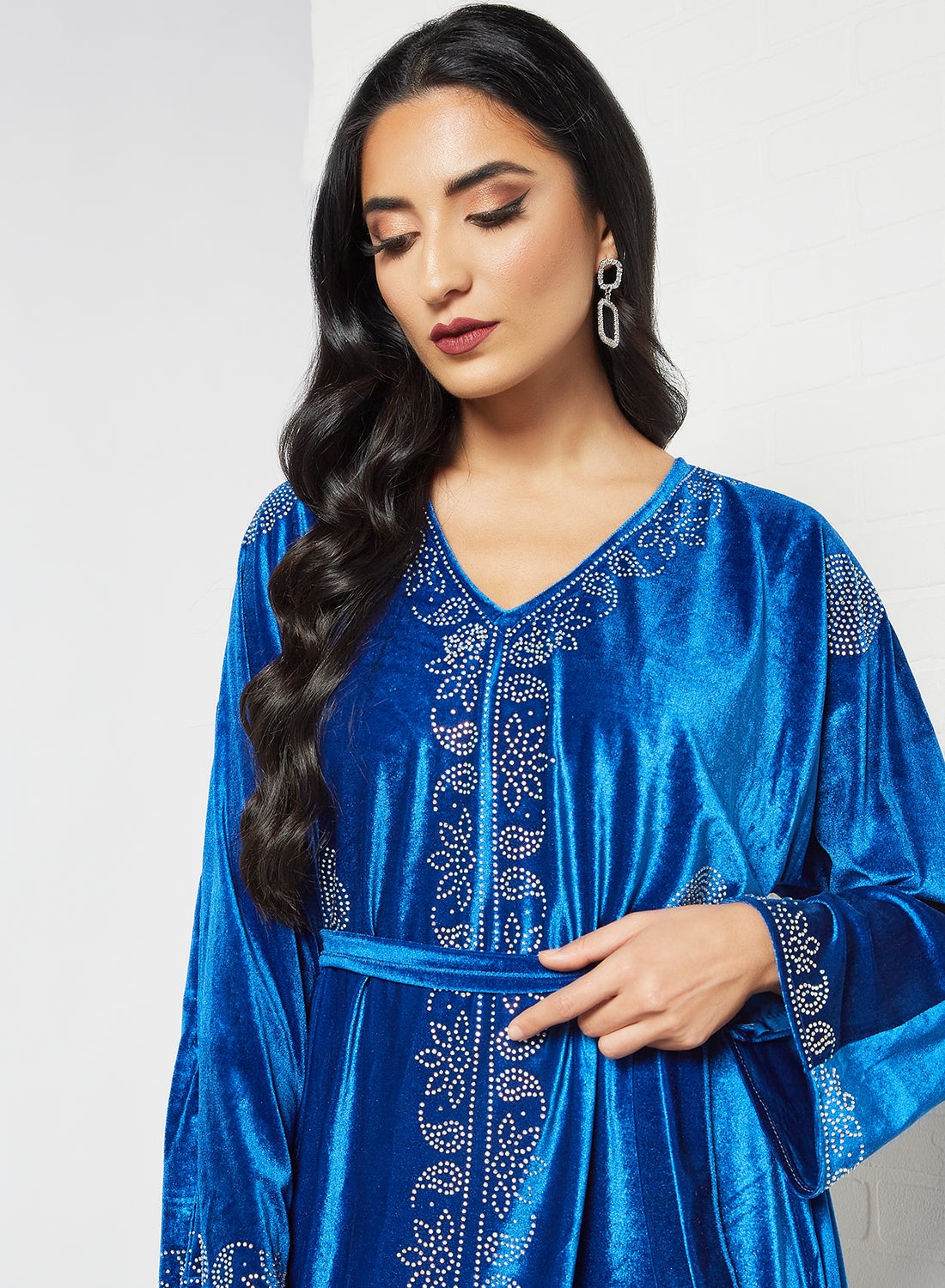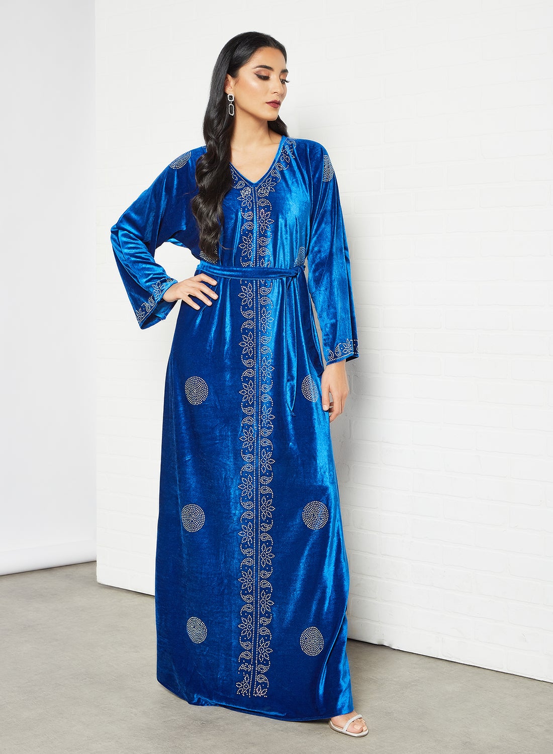 | nameOriginal | Stone Embellished V-Neck Trendy Modest Jalabiya Blue |