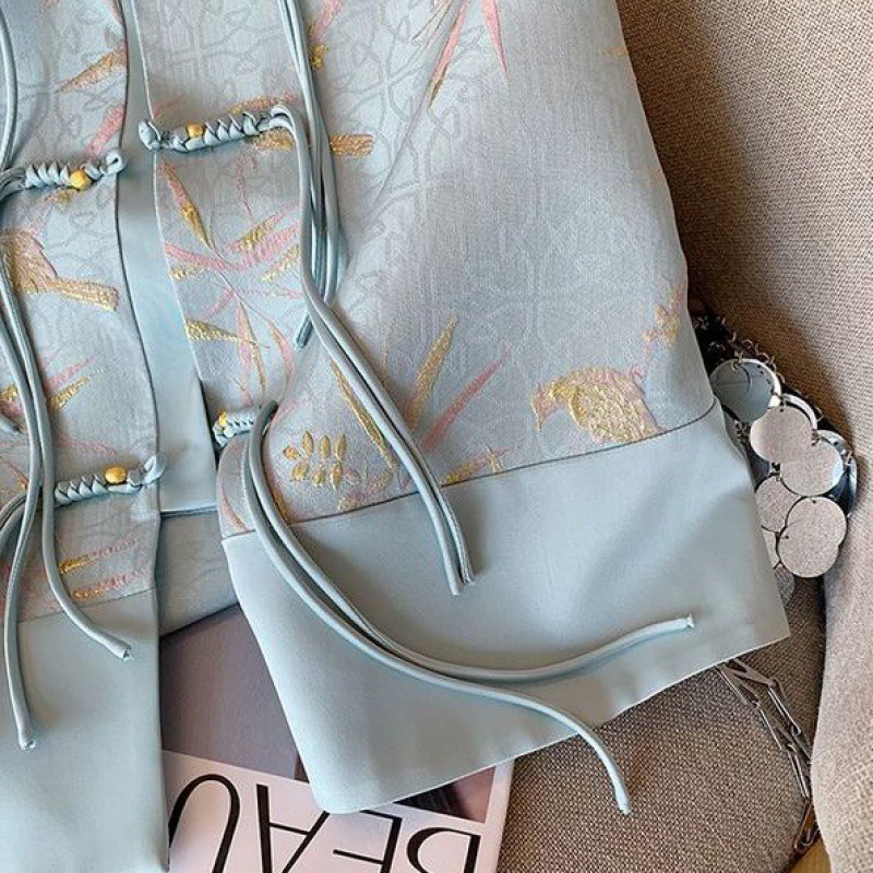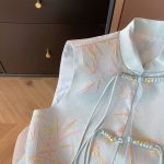 Blue New Chinese Style Gold Silk Bamboo Leaf Jacquard Tassel Vest 2024 Women’s Spring and Summer National Style High-end Waistcoat