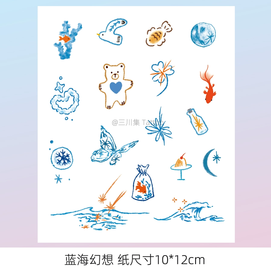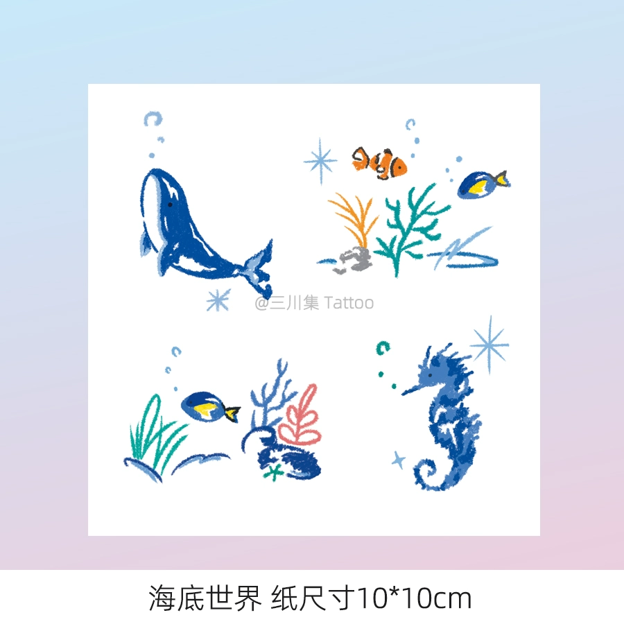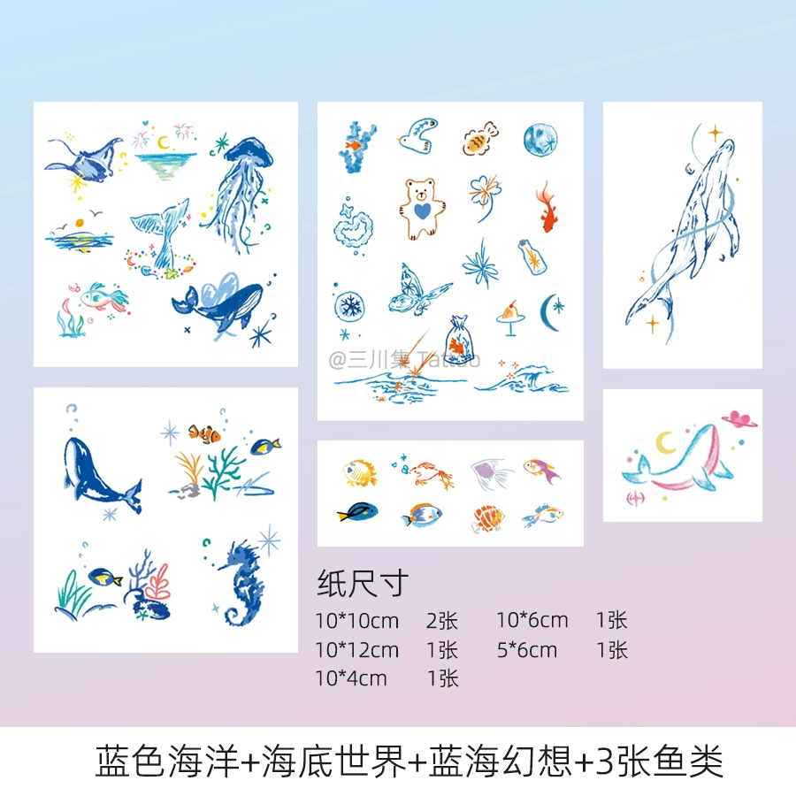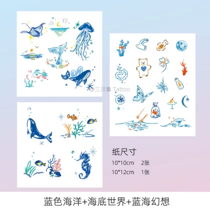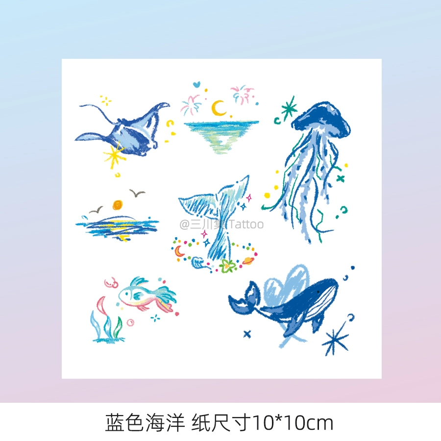 | nameOriginal | Blue Ocean Elements Fun Style Whale Color Tattoo Sticker Arm Face Flower Arm Waterproof Long-lasting Female Collarbone |