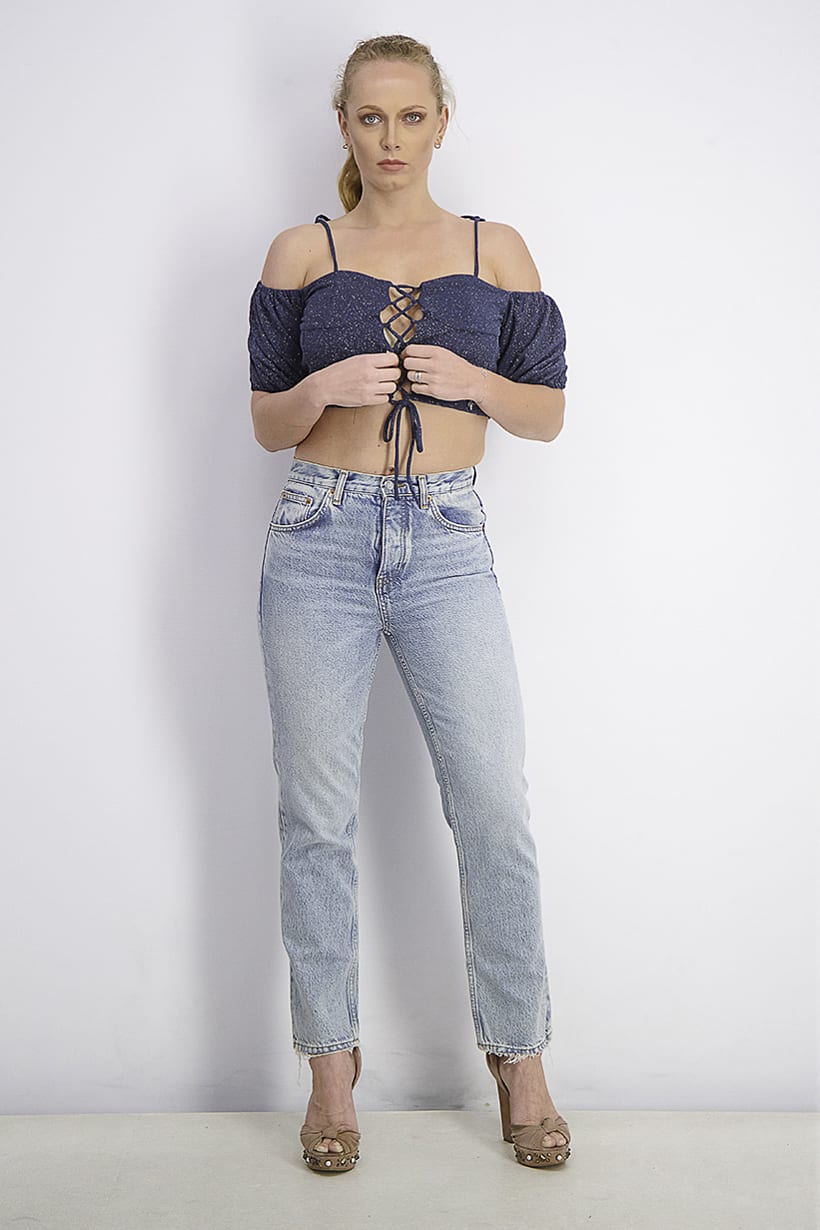 | nameOriginal | Women Ruched Off Shoulder Top, Blue |
