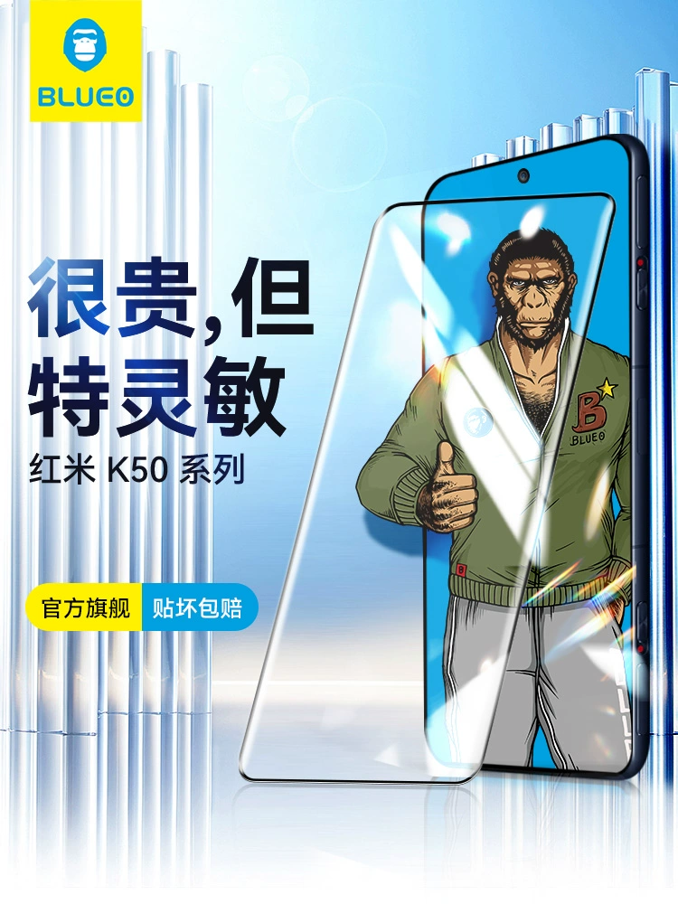 | nameOriginal | Blue Orangutan suitable for Redmi K70 tempered film K60 Supreme Edition K50 mobile phone film k40 e-sports note12 Ultra Xiaomi note 11pro+ gaming version 10/9 Supreme Commemorative K30s protection |