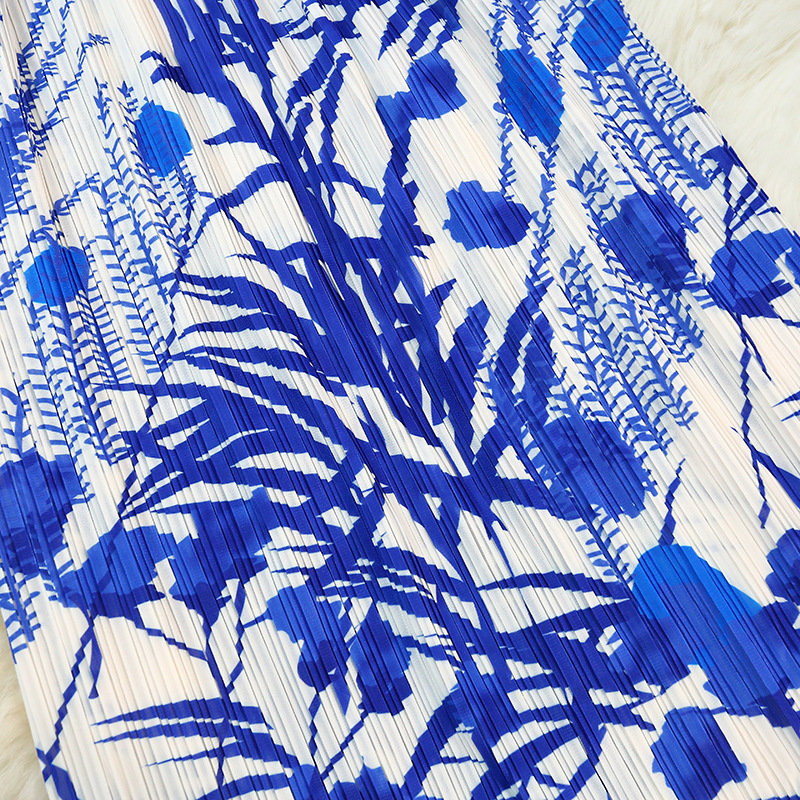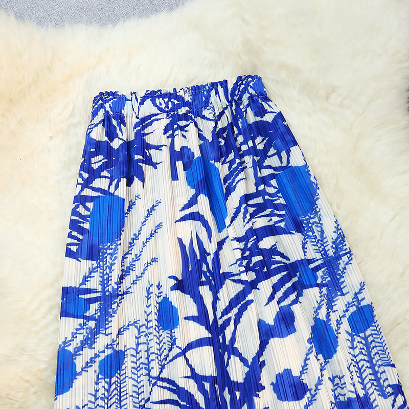 Blue Pleated Skirt Summer New Arrival Printed Design Niche Loose All-Match plus size Pleated Skirt
