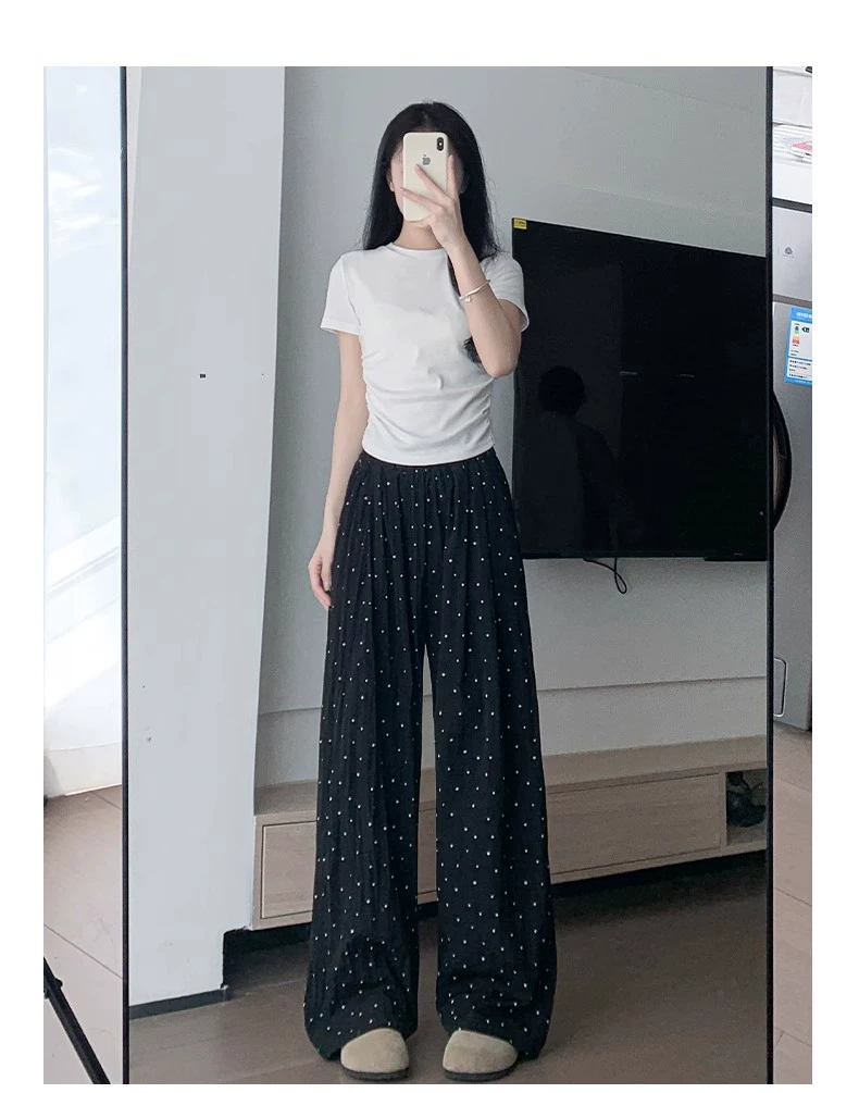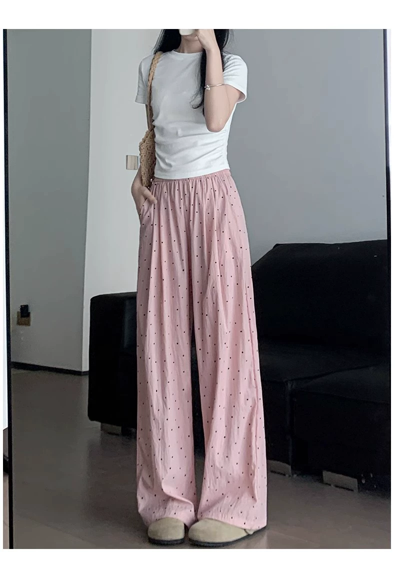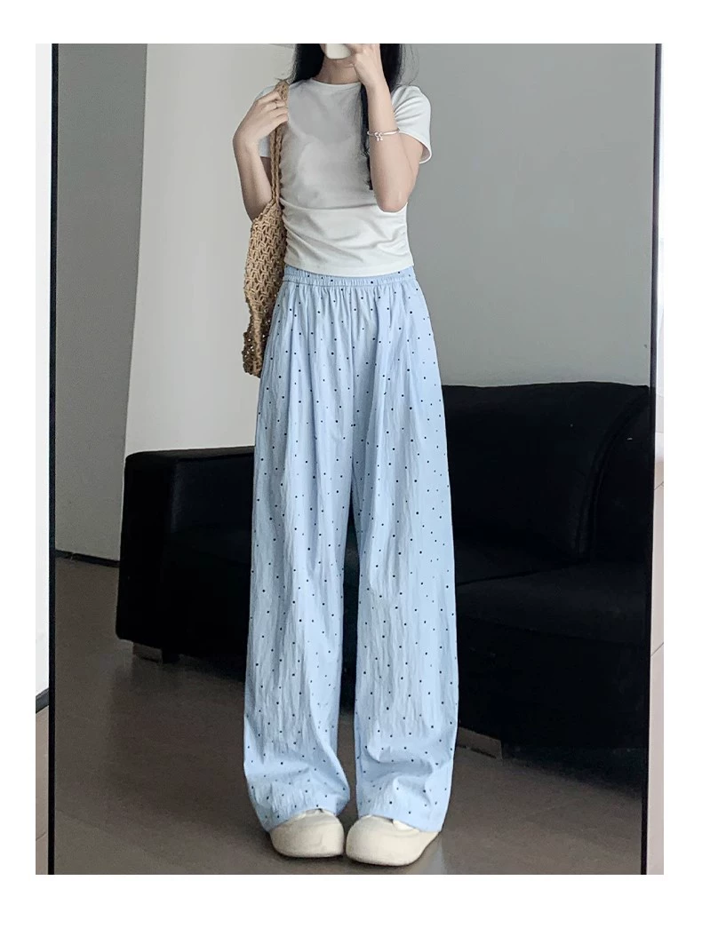 Blue polka-dot wide-leg pants for women's summer new casual thin pants for small people, lazy and relaxed, ice silk Yamamoto pants