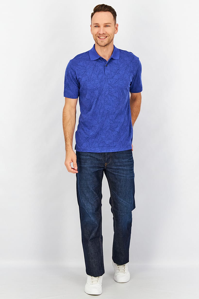 Men Clothing, Polo Shirts, men regular fit allover print short sleeve polo shirt blue