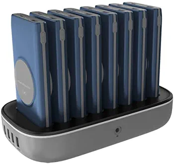 Powerology 8 in1 Power bank Station comes with 8 power packs of 10000mAh which support PD & QC 20W and Wireless charging 15W. It's equipped to charge the devices with either type-c or lightning.