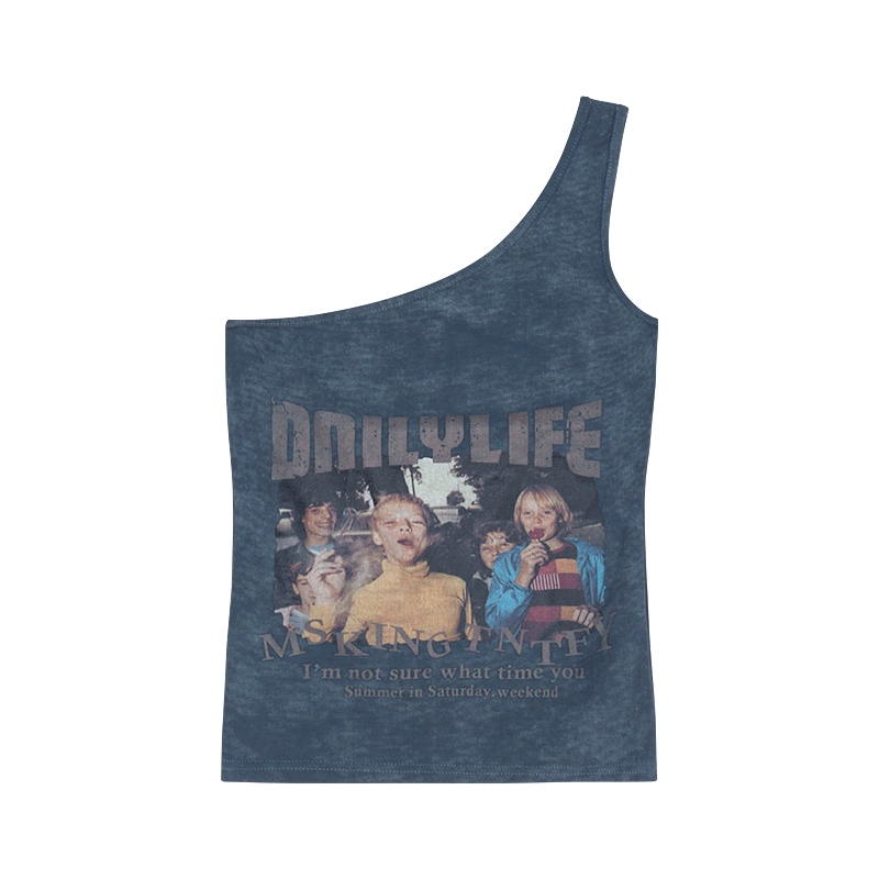 | nameOriginal | Blue printed slanted shoulder slim fit hottie sleeveless suspender belt |