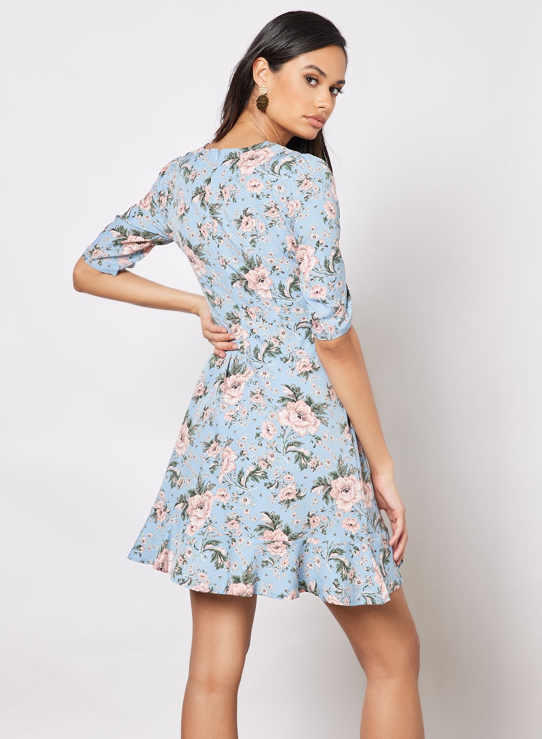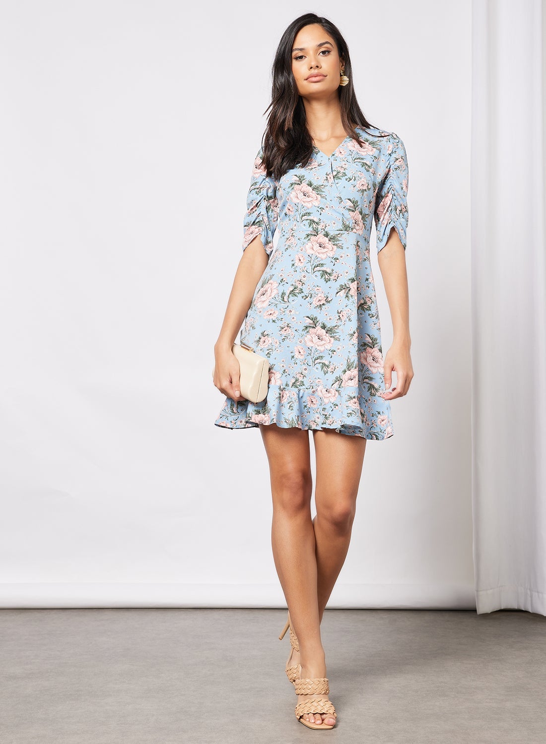 | nameOriginal | Casual V-Neck Shirring Short Sleeve A- line Mini Dress Printed Pattern Blue |