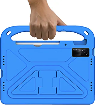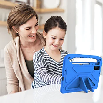 The case also features a no-slip handle that is perfect for kids’ little hands, and a cartoon at the back that doubles as a foldable kickstand. The kickstand can be adjusted to provide a comfortable horizontal or vertical viewing angle, and it won’t take up much space. Additionally, the case comes with a removable shoulder strap that can be attached to any two corner holes, making it easy to display your tablet behind a car headrest or between two seats.