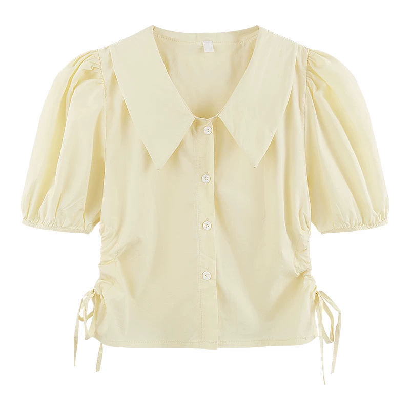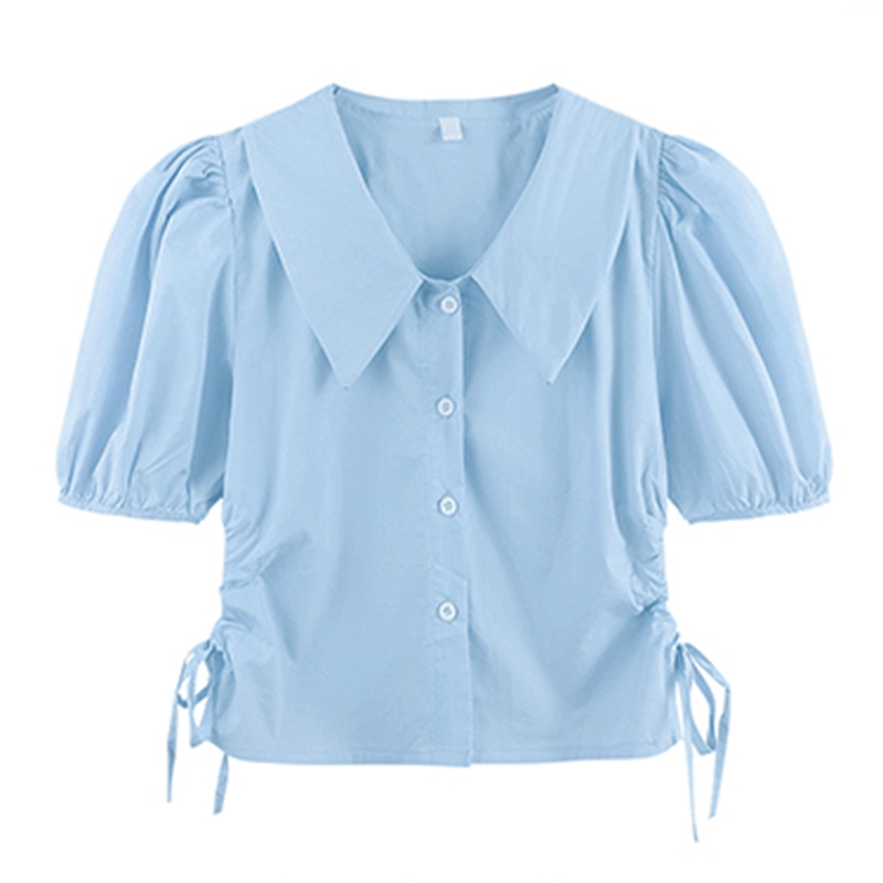 | nameOriginal | Blue puff sleeve niche chic and beautiful drawstring shirt |