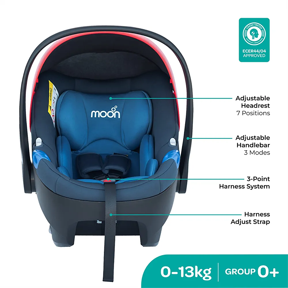| nameOriginal | MOON Bibo Max Carrier Car Seat – Baby Travel Gear for infant – Rear-Facing Child Seat Carry Cot Adjustable Canopy Suitable for Group 0+ – Blue |
