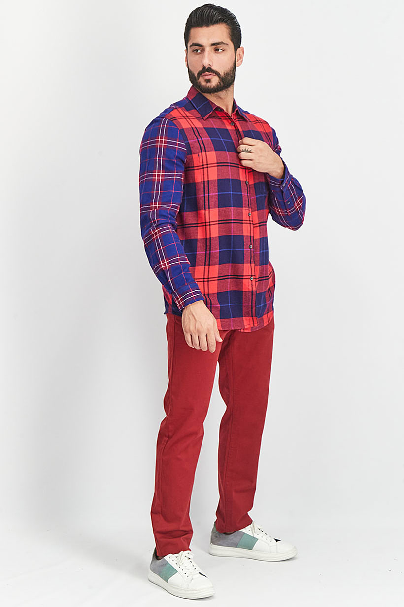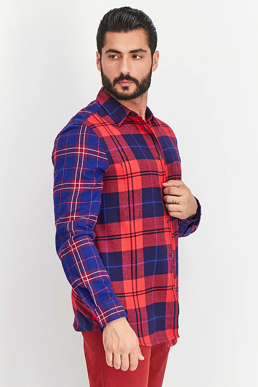 Blue/Red Casual Shirt with Long Sleeves for Men in Regular Fit.