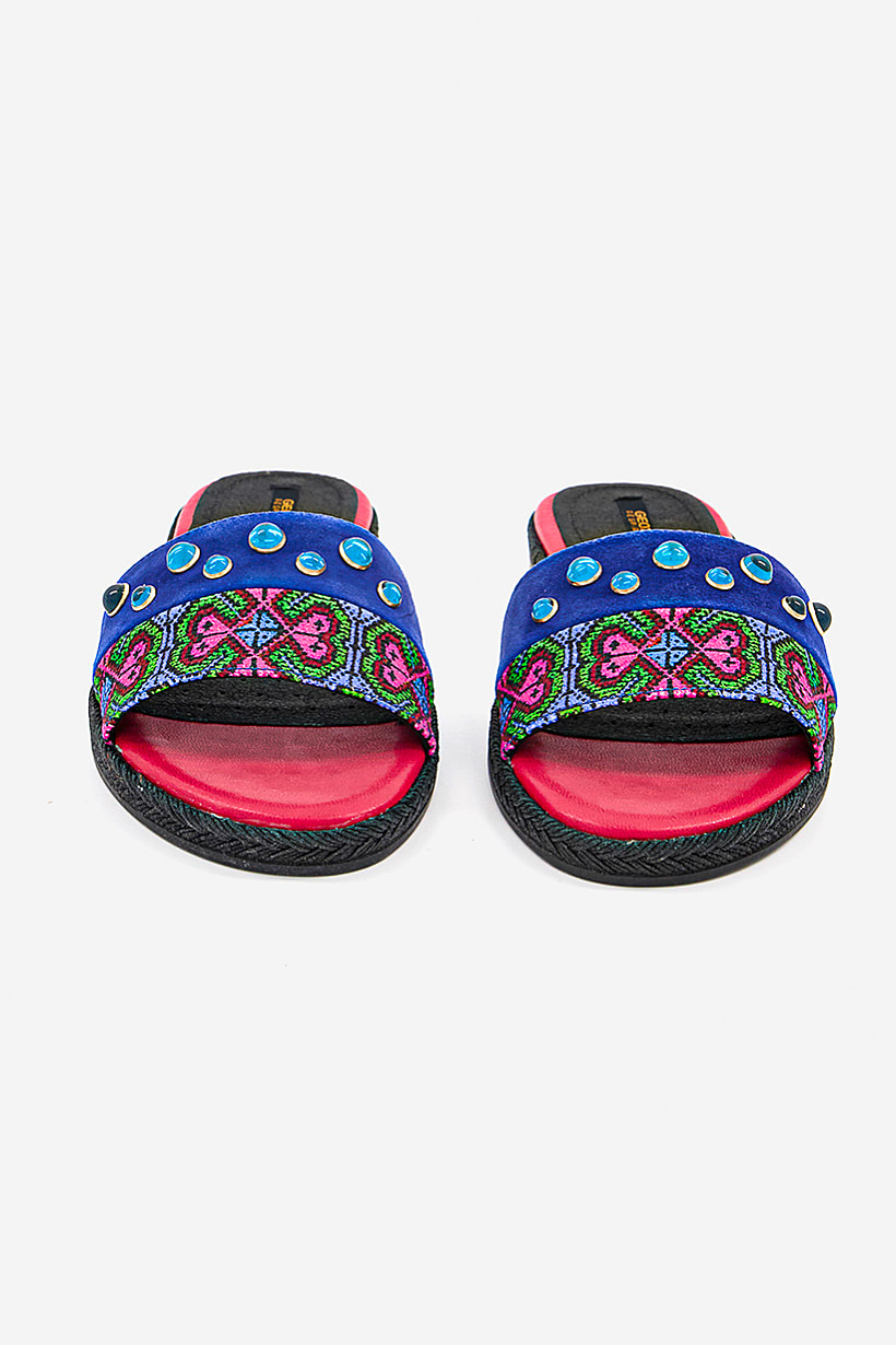 Ideal For : Women, Shoe Closure : Slip on, Shoe Width : Standard, Sole Material : Rubber sole, Toe Style : Open toe, Disclaimer : Product color may slightly vary due to photographic lighting sources or your monitor settings., Occasion : Casual, Shoe Material : Suede , Fabric, Rubber , Color Family : Blue,