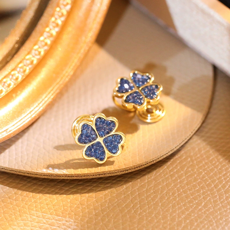 Blue rhinestone female niche light luxury high -level four -leaf grass