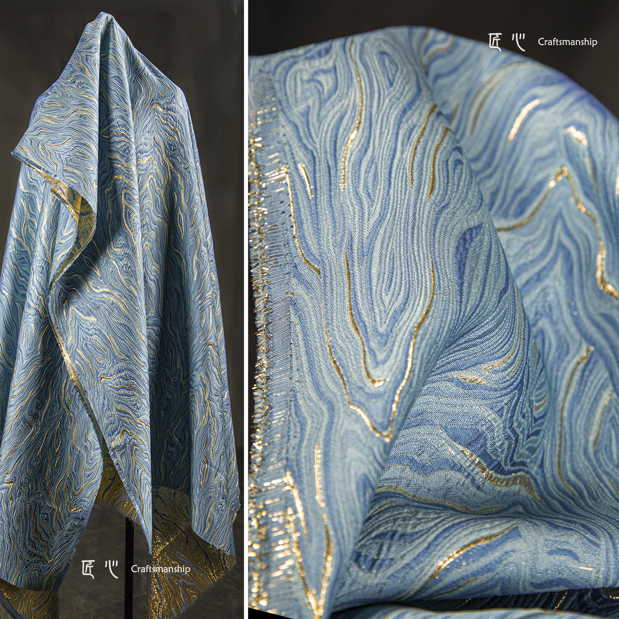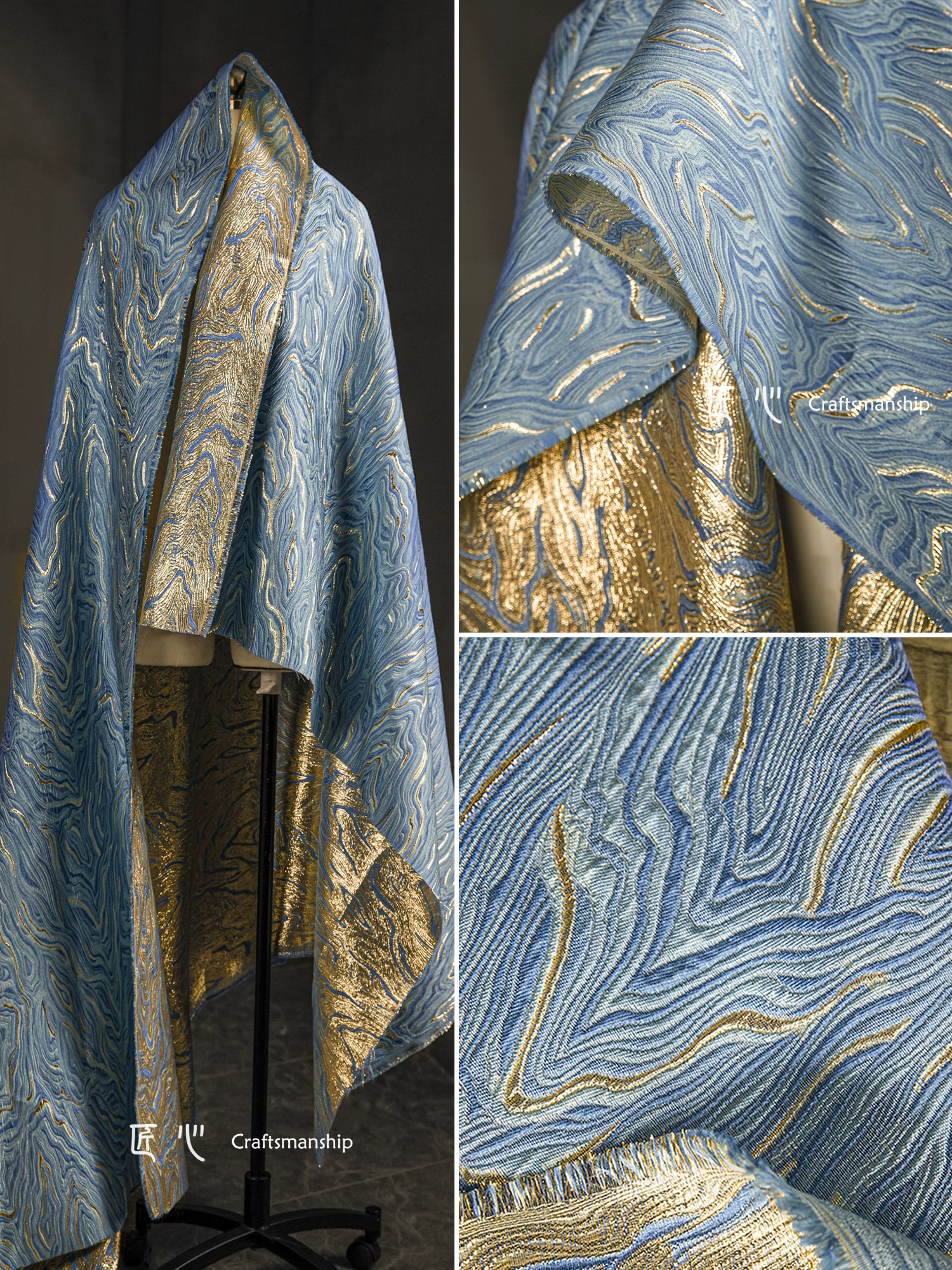 | nameOriginal | Blue sea gold shimmer jacquard fabric three-dimensional texture oil painting art high-end coat clothing designer fabric |