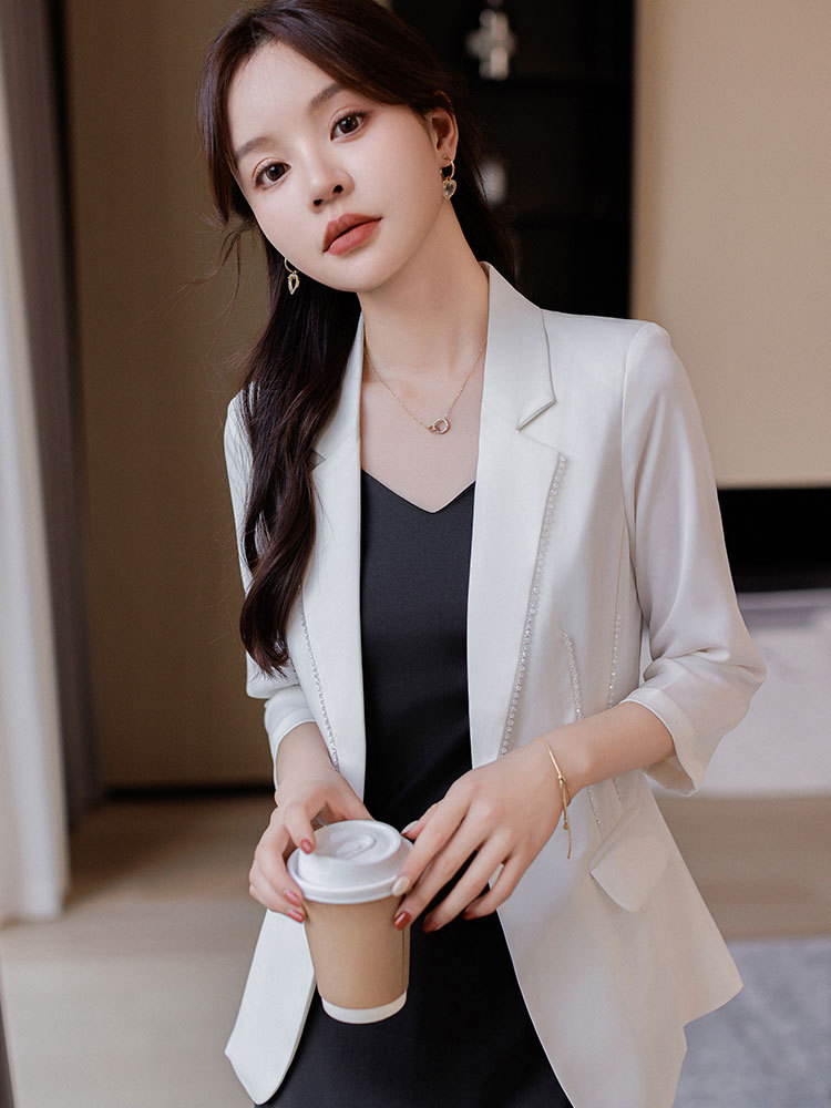 Blue Seven-Sleeve Suit Jacket Women’s Summer New Style Chic Elegant High-Level Thin Commuter Suit Design Sense
